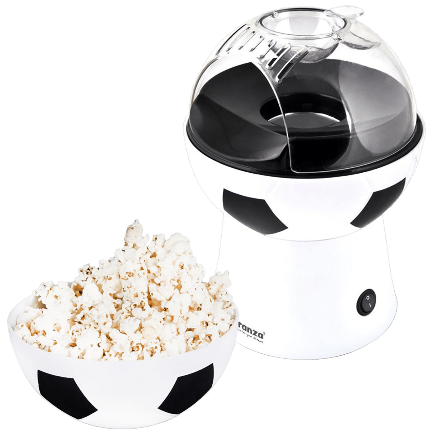 Aparat za kokice, brzo i jednostavno pripremanje kokica bez upotrebe ulja, cirkulacija vrućeg zraka obavlja sav posao, rezultat ukusne kokice sa manje kalorija za samo 2 minute, kapacitet 0.27 lit, premaz non-stick protiv ljepljenja, ON /OFF prekidač, napajanje 220 - 240 V / 50 Hz