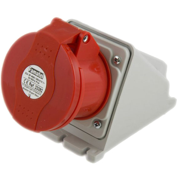 Zidna utičnica, 32A, 380÷415VAC, Frekvencija 50-60Hz, 3 Polna (3P+E), PIN lokacija 6H, IP44, crvena boja.