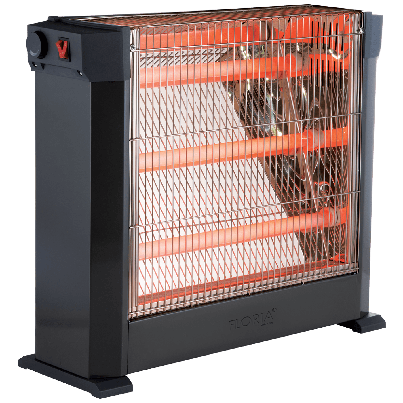 Grijalica sa halogenim ( kvarcnim ) grijačem, snaga 2250 W, 2 razine grijanja, 3 kvarcna grijača, podesiv termostat, sigurnosni preklopni prekidač