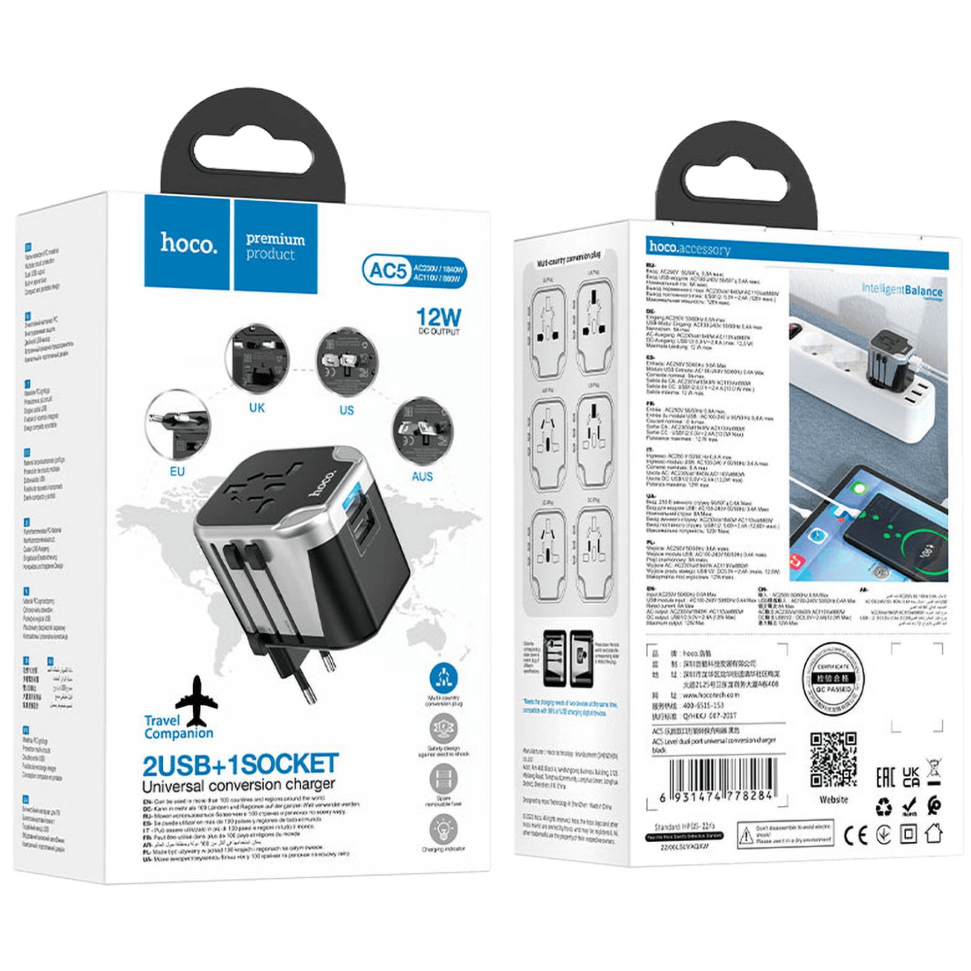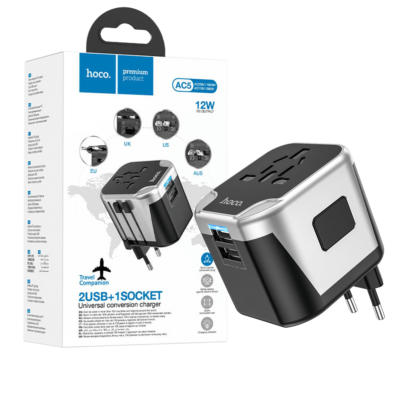 hoco. Punjač kučni, univerzalni, EU/UK/US/AU, 2 x USB,2.4 A - AC5 Level