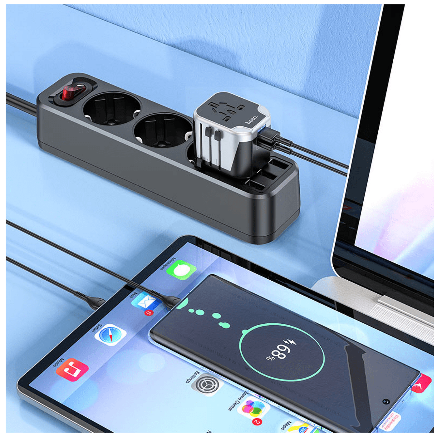 Praktičan i univerzalan kućni punjač koji zadovoljava sve vaše potrebe u jednom uređaju! Savršen je za putovanja s konverzijom utikača za EU, UK, US i AU.