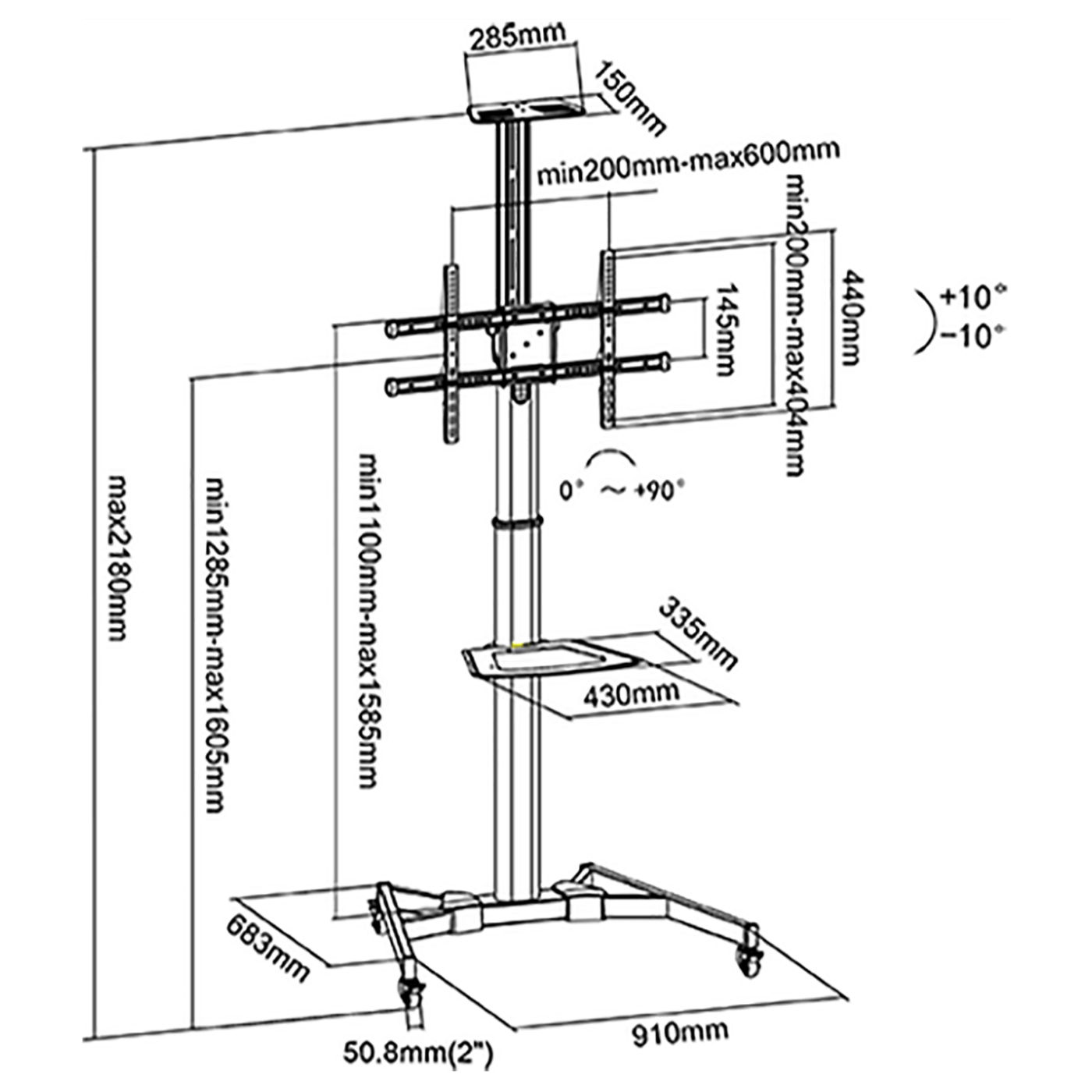 ✅ VESA standard 200 x 200 do 600 x 400