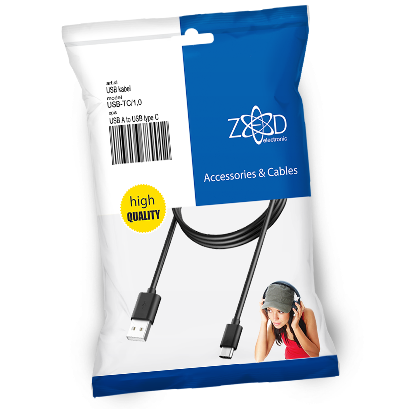 ZED electronic USB A na USB type C, dužina 1.0 metar - USB-TC/1,0
