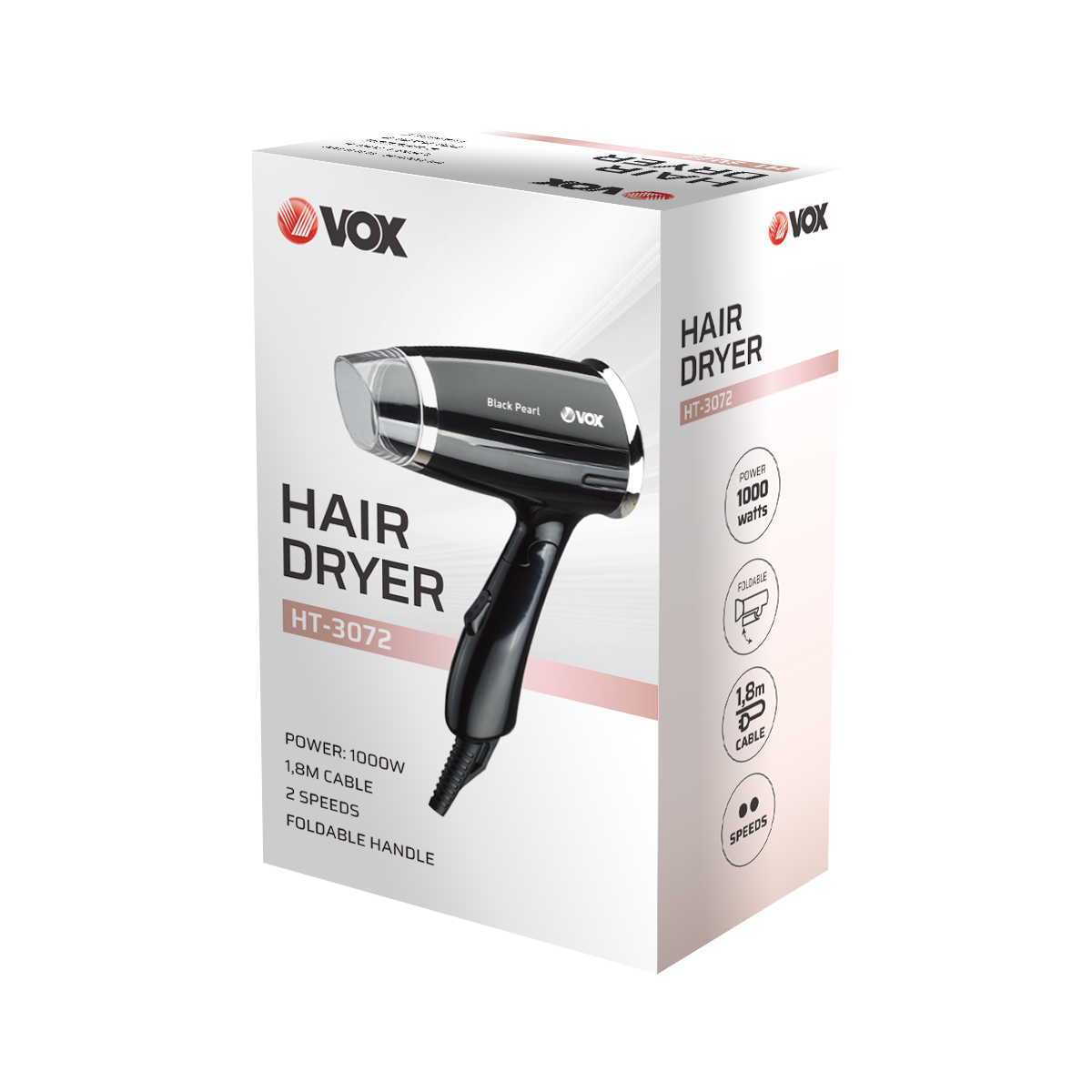 Fen za kosu VOX HT 3072 je moćan i kompaktan uređaj dizajniran za brzo i efikasno sušenje kose. Sa svojom snagom od 1000 W i dvostepenom kontrolom temperature, ovaj fen odgovara svim tipovima kose.