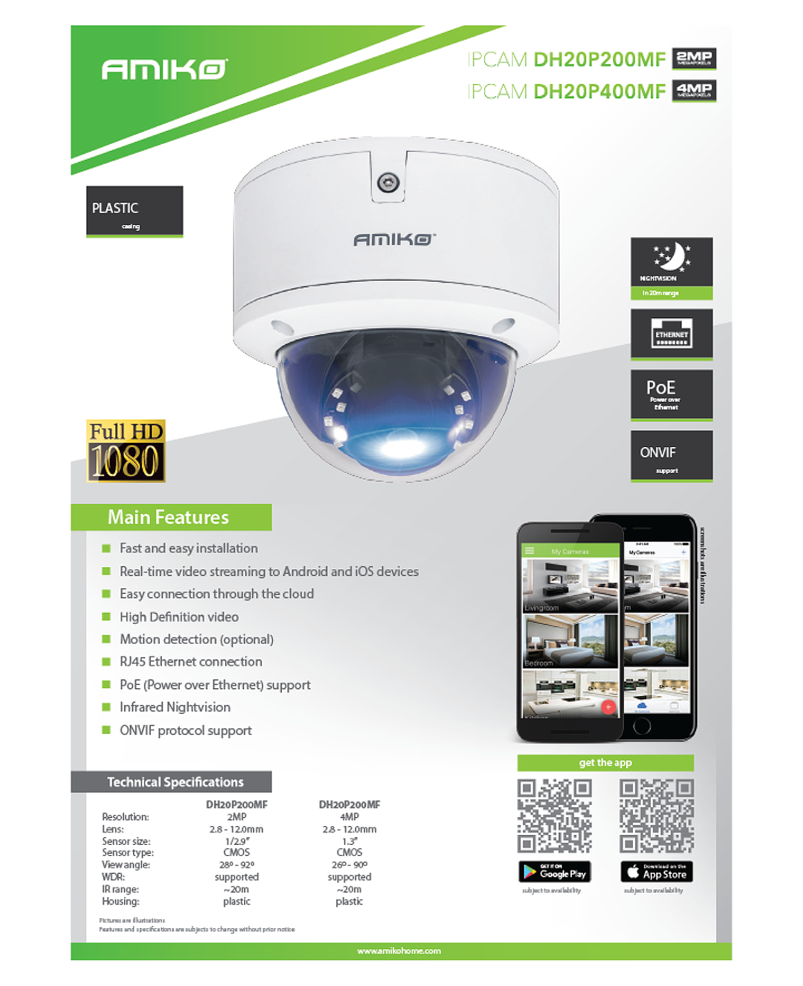 Amiko Home Kamera IP 4 MP, PoE, 1/3" CMOS, HD Lens 2,8 - 12mm - DH20P400MF