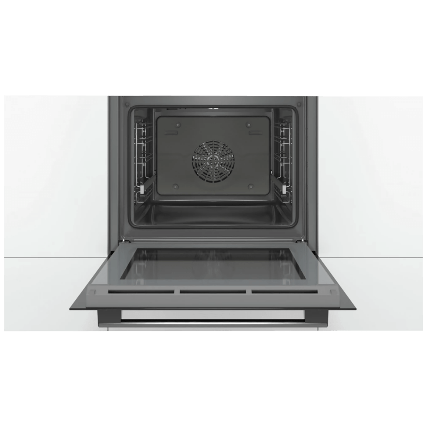 Ugradbena pećnica Serie4, priključna snaga 3400 W, XXL pećnica zapremine 71 lit. s 7 načina grijanja: 3D vrući zrak, gornje/donje grijanje, ventilatorski roštilj, funkcija pizza, funkcija pizza, blagi vrući zrak, velikopovršinski varijabilni roštilj, raspon temperature 50 °C - 275 °C, upravljački gumbi na izvlačenje, potpuno staklena unutarnja strana vrata, LED zaslon za upravljanje, elektronički timer, klasično otvaranje, brzo zagrijavanje, halogeno osvjetljenje, horizontalna ručka, dječija sigurnosna brava,