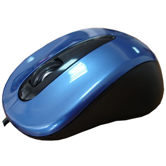 Optički žični miš, rezolucija 800dpi, konekcija USB 2.0, 3 tipke, scroll, plava boja, kabel 1,5 met.