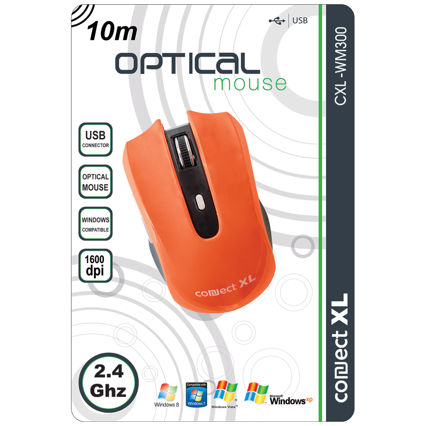 Connect XL Miš bežični, 1600dpi domet 10 met, narandžasta boja - CXL-WM300