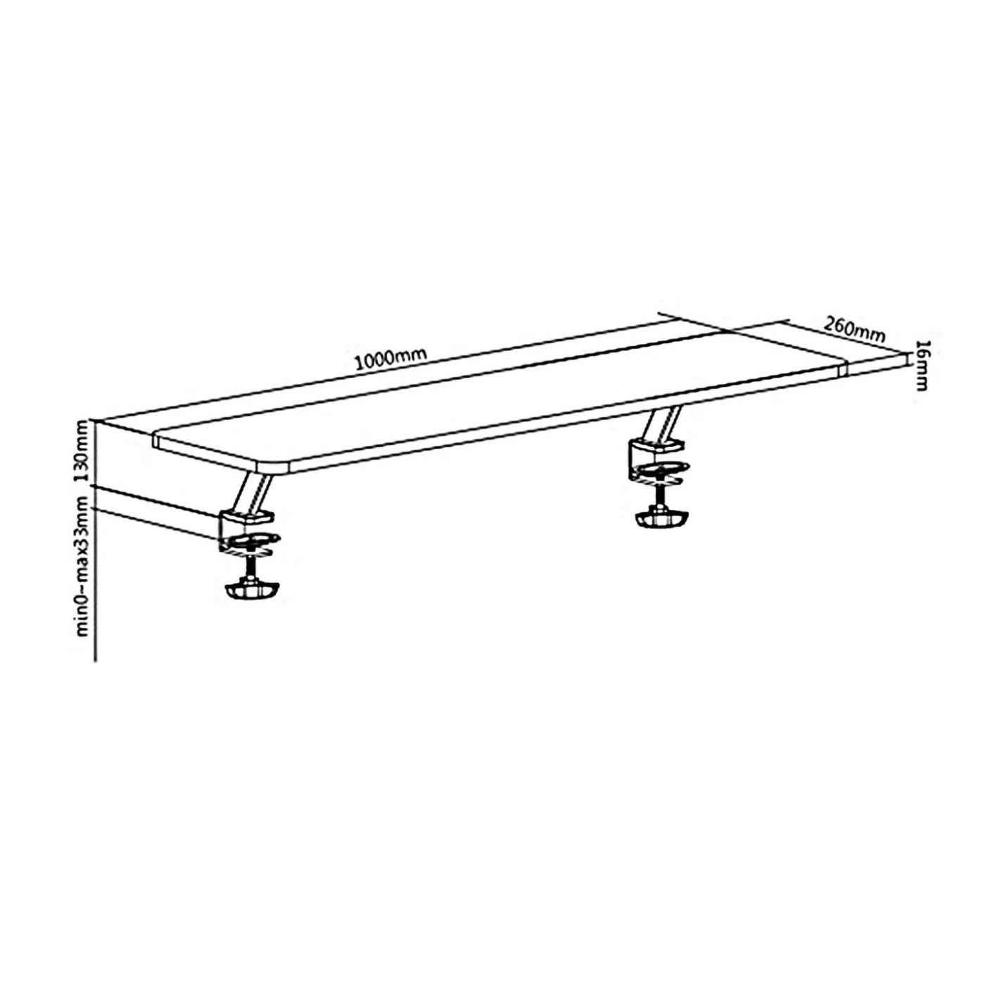 - Montaža na stol: min. širina 0mm/ maks. širina 33 mm