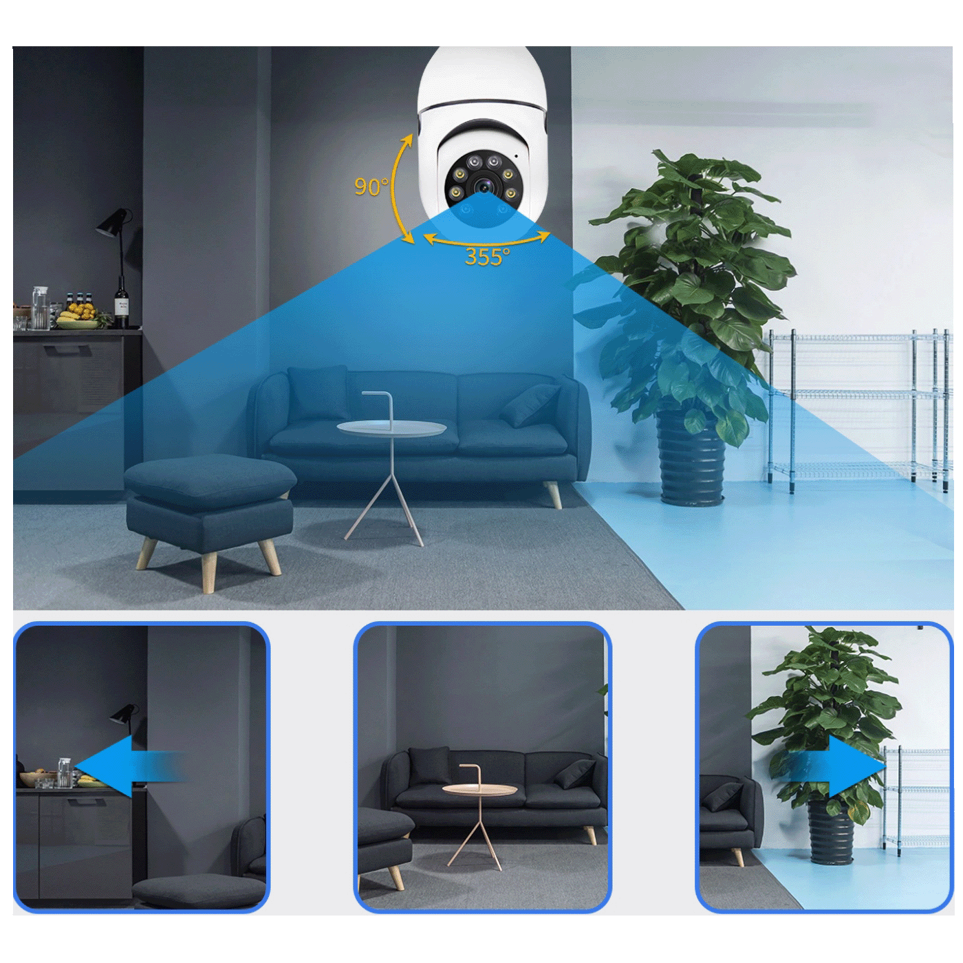 Kamera sa detektorom pokreta, Smart WiFi, noćni vid, podržava Alexa Google, 4 Mpixel, E27 grlo, bijela