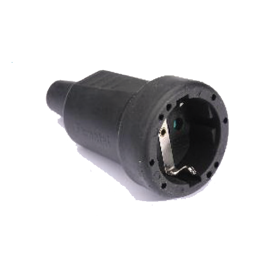 Utičnica, gumirana, sa uzemljenjem , 16A/250V, IP44, IK07, radna temperatura, -25ºC + 85ºC, standard UNE 20315-1-1 / UNE 20315-1-2, crna boja.