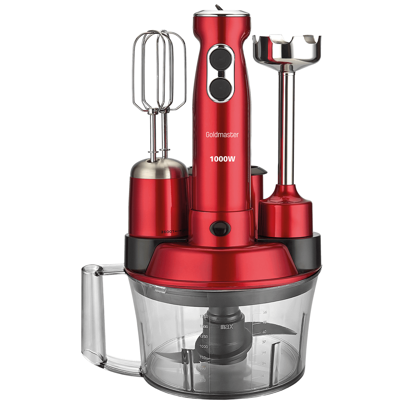 Goldmaster Štapni mikser sa posudom, 5u1, 1000 W, Multipraktik - GM-7239K Elena Max Red