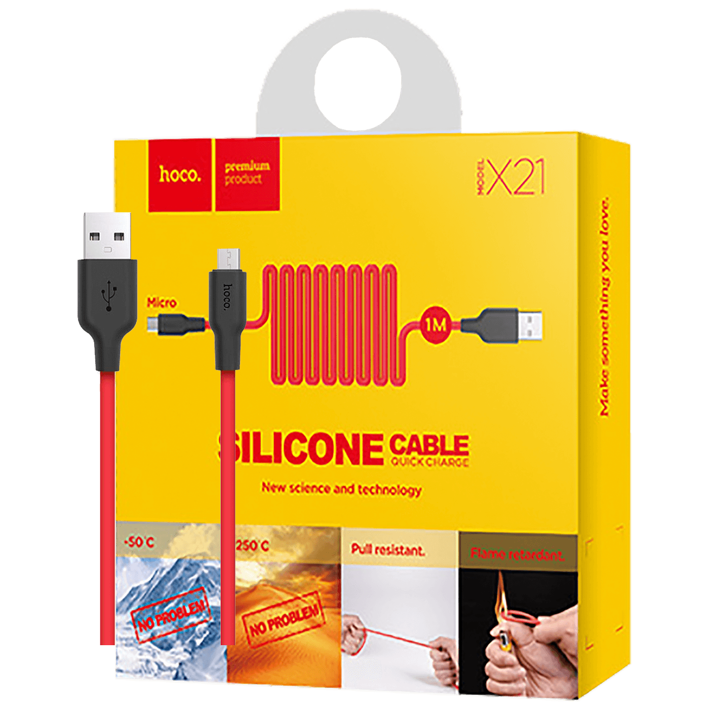 hoco. USB kabl za smartphone,silikonski,1.2 met,2 A, crno/crvena - X21 Silicone Micro USB, Black/Red