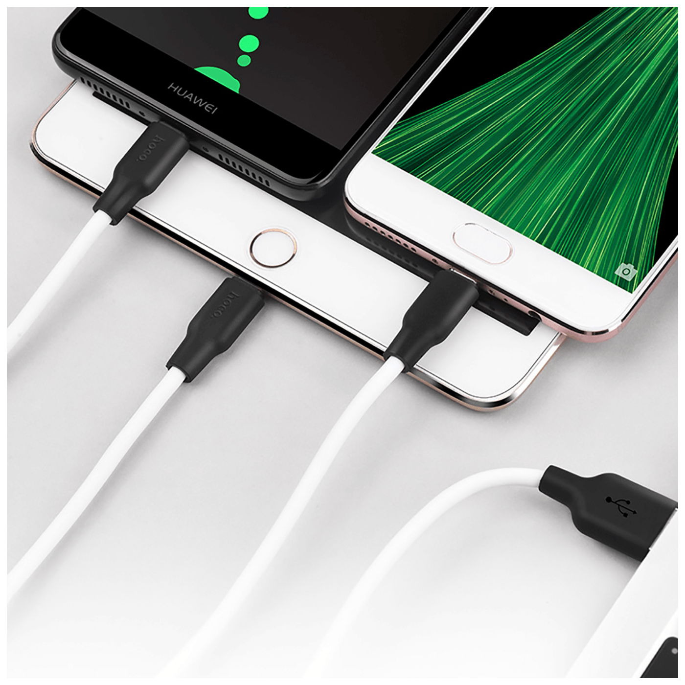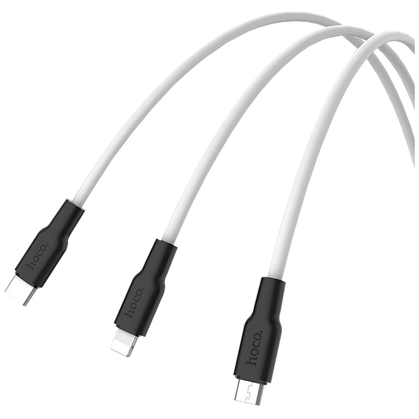 hoco. USB kabl, 3in1, microUSB, type C, Lightning, 1.2 met., 2 A - X21 Silicone 3in1, Black/White