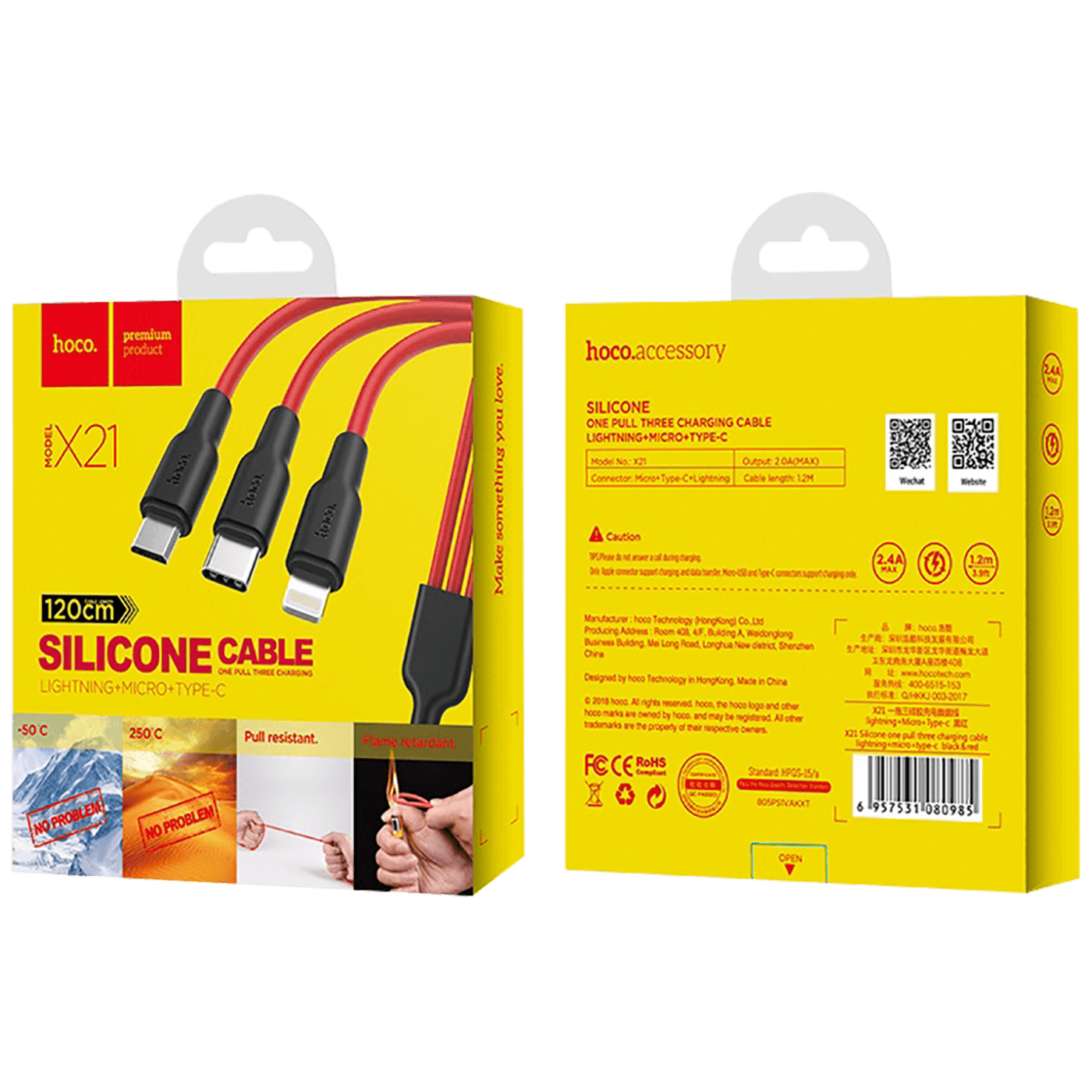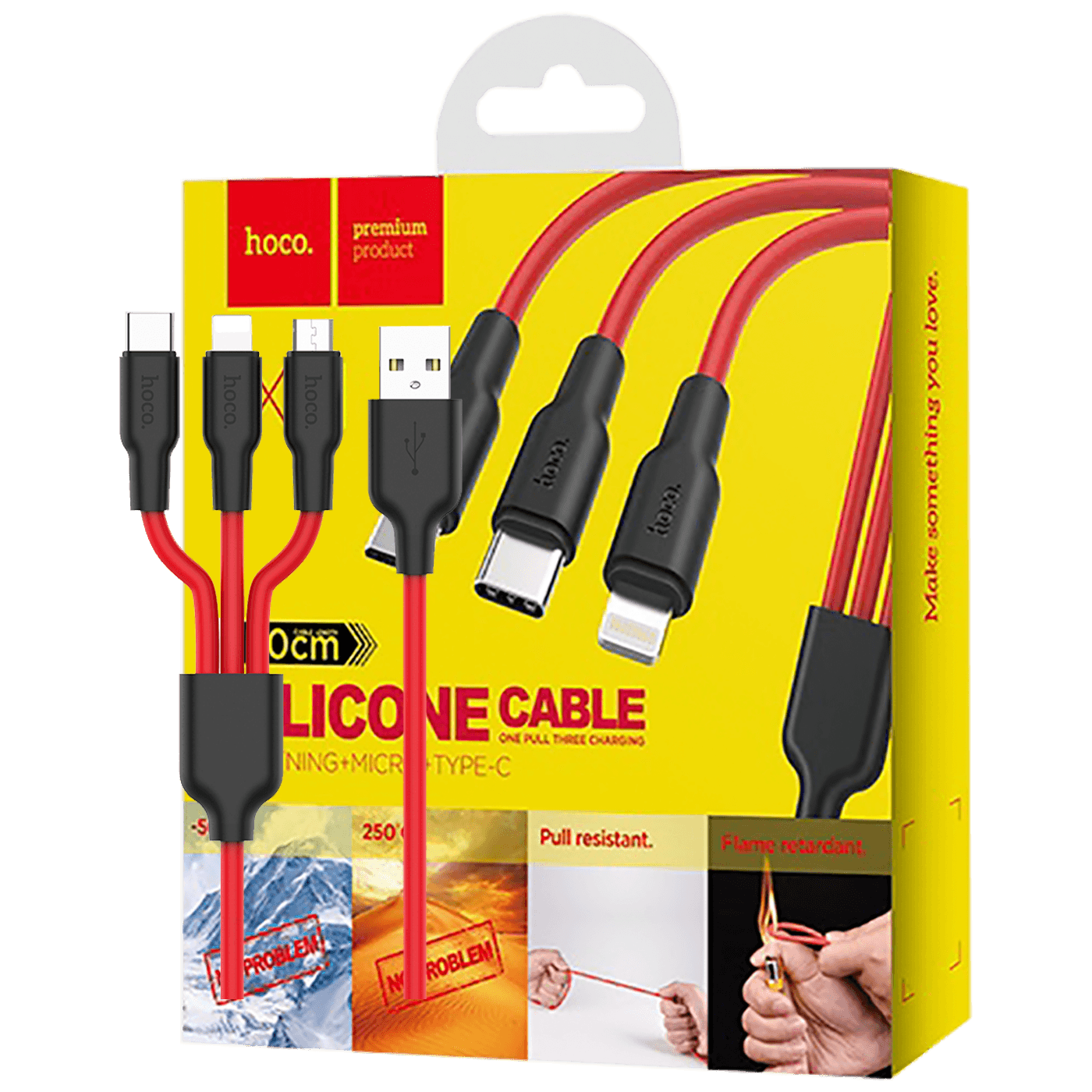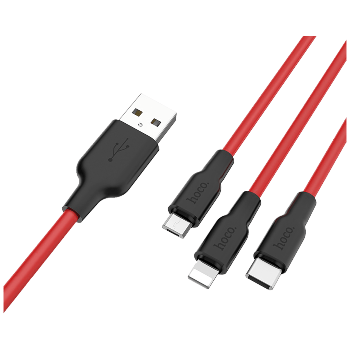 hoco. USB kabl, 3in1, microUSB, type C, Lightning, 1.2 met., 2 A - X21 Silicone 3in1, Black/Red