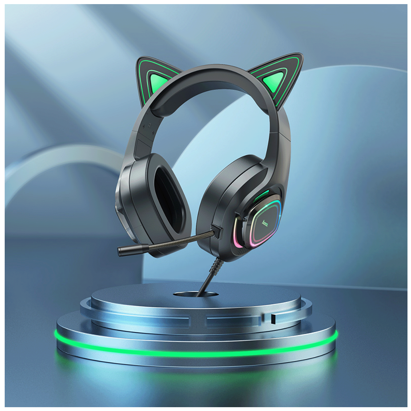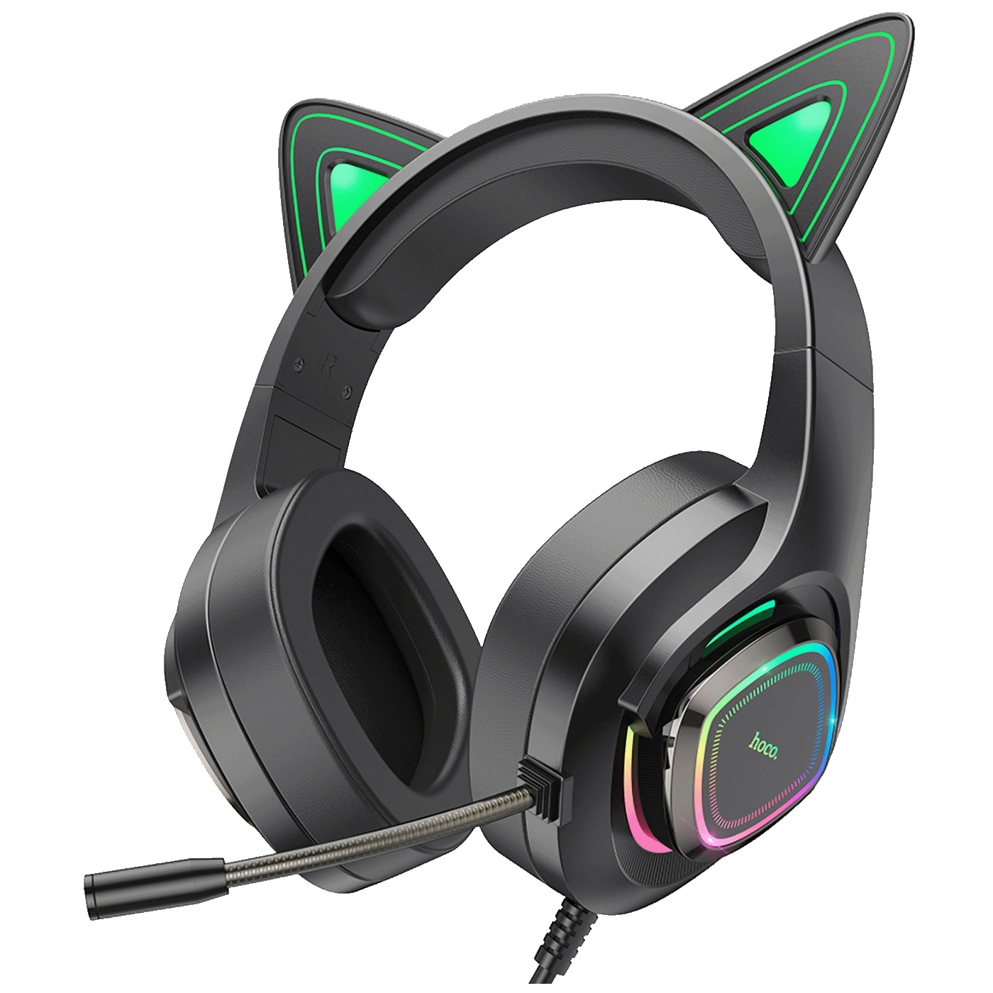 hoco. Slušalice sa mikrofonom, gaming, USB/3.5 mm, LED - W107 Cute Cat Black/Green