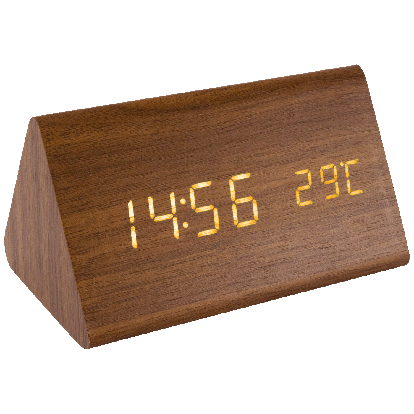 Atraktivan digitalni sat sa alarmom i termometrom, savršen za svaki dom. Elegantan drveni dizajn donosi toplinu i stil, dok LED display omogućava lako očitavanje vremena, datuma i temperature u obliku od 0 do 50°C.