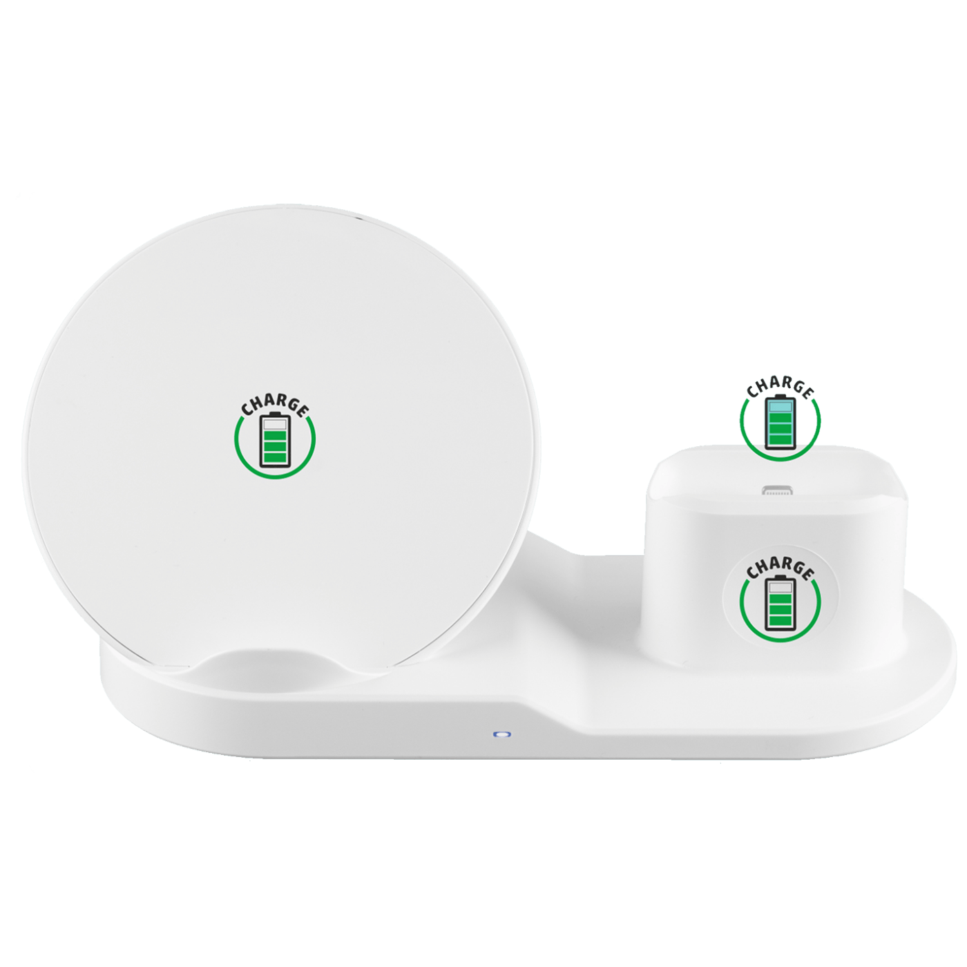 Iskoristite prednosti modernog bežičnog punjenja s ovim praktičnim punjačem koji istovremeno puni vaš telefon, pametni sat i slušalice!