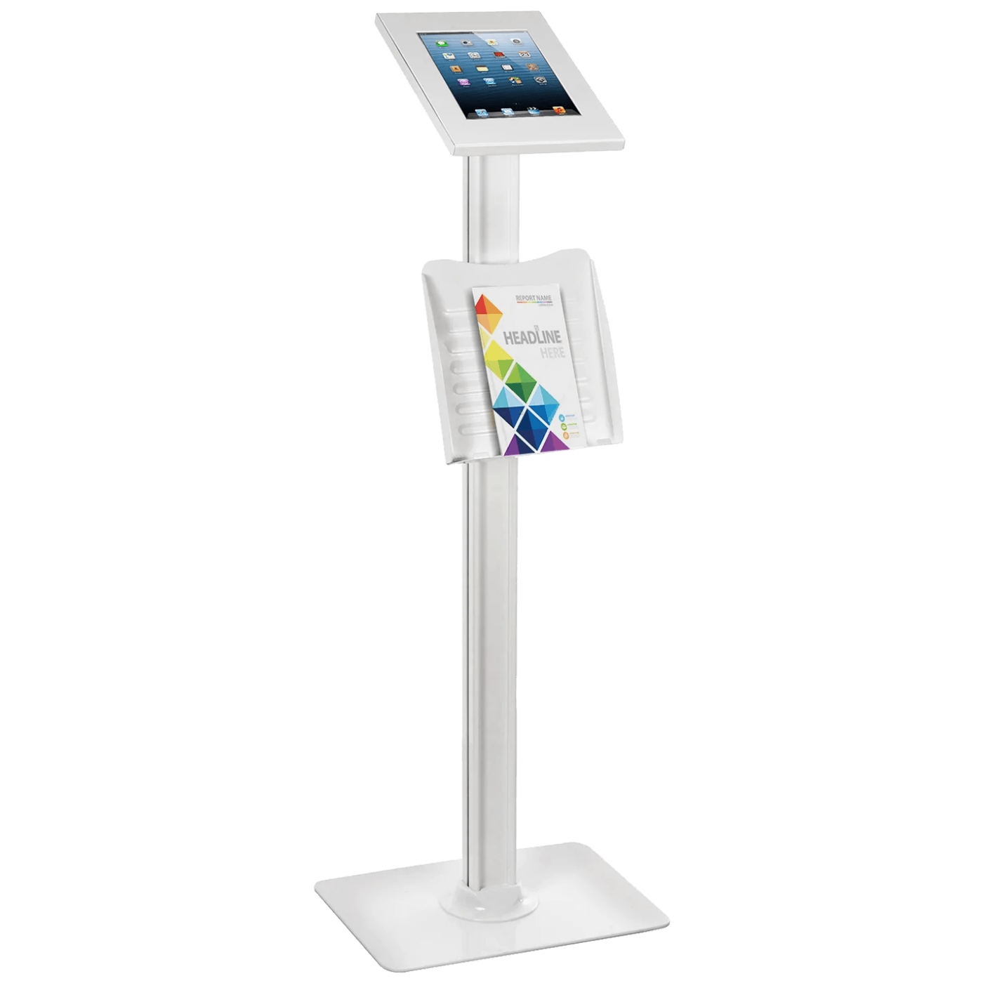 Univerzalni podni stalak sa zaštitom od krađe idealan je za izlaganje vaših tableta i brošura na profesionalan način. Savršen je za poslovne prostore, izložbe ili prodajne događaje.