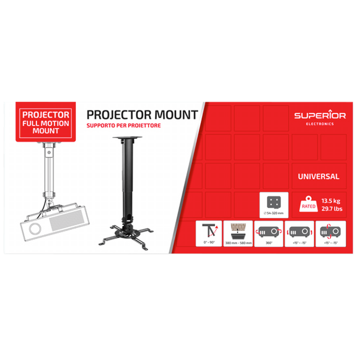 Superior Stropni nosač za projektor, univerzalni - Plafonski nosač za projektor