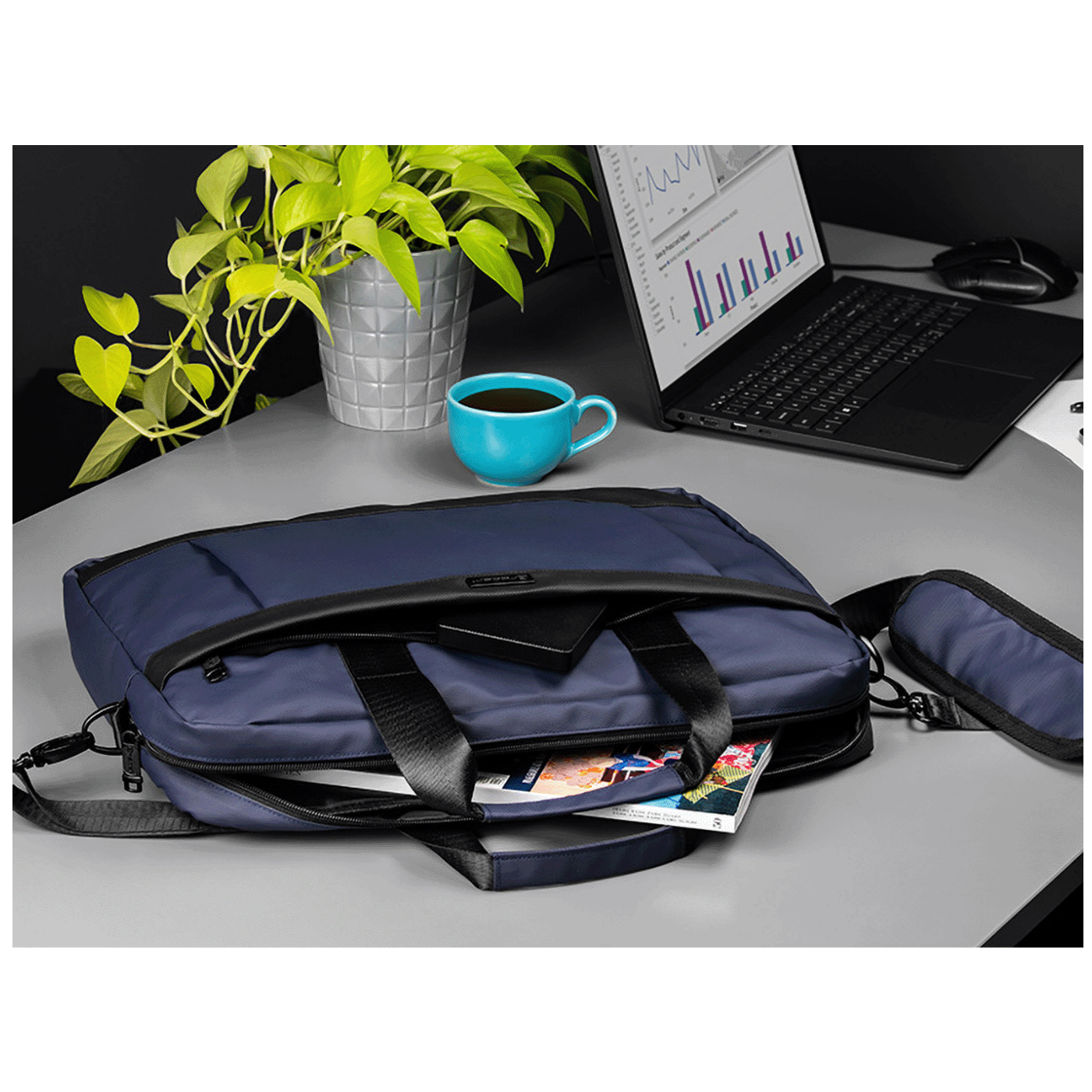 Praktična i elegantna torba za prijenosna računala idealna za vaš svakodnevni život! Ova torba odlikuje se funkcionalnošću i izdržljivošću, a dolazi u privlačnoj tamnoplavoj boji.