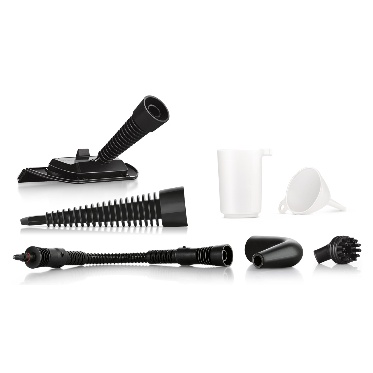 Širok spektar dodataka: Osnovna ravna mlaznica, Savijena mlaznica, Fleksibilno crijevo, Mini mop glava sa krpom za pokrivanje, Okrugla četka za čišćenje prozora/ogledala