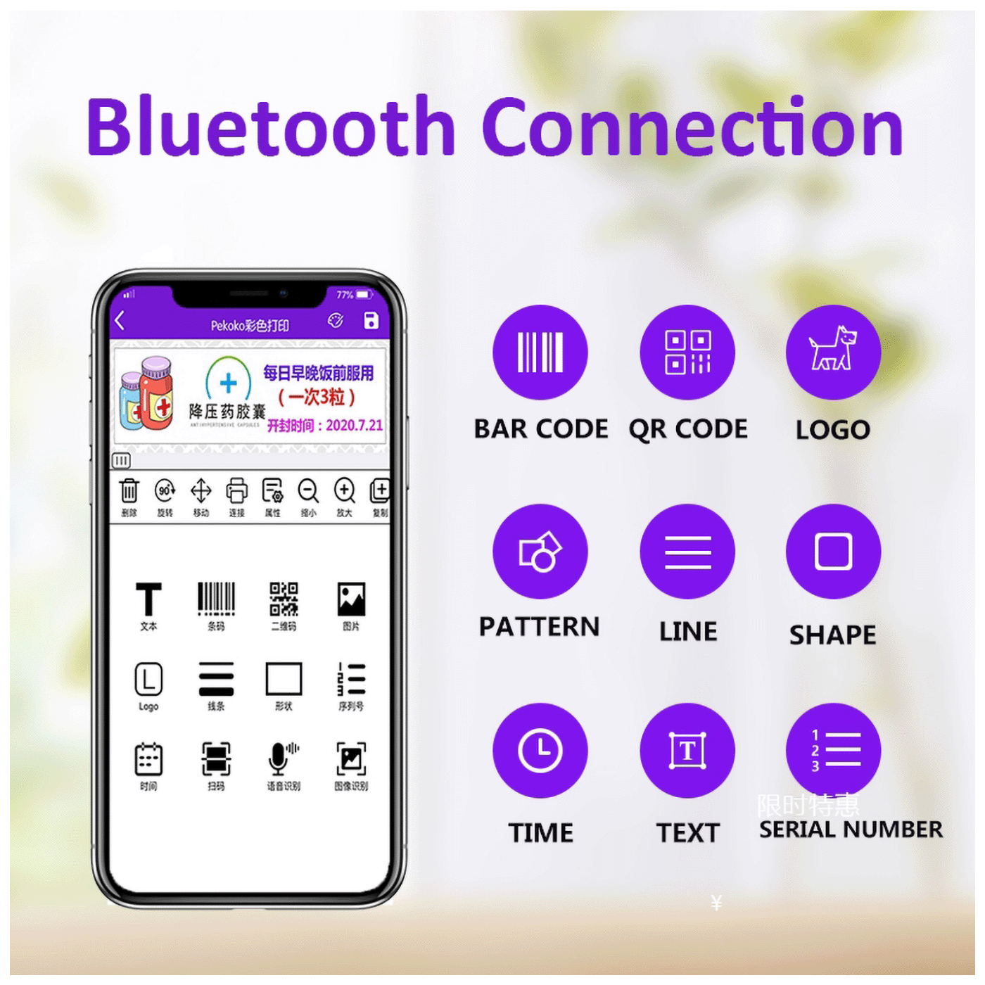 NN-Su Ručni inkjet štampač etiketa, prilagođeni sadržaj, Bluetooth - K1, Handheld Label Printer