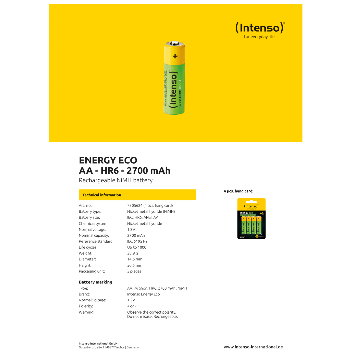 (Intenso) Baterija punjiva AA / HR6, 2700 mAh, blister 4 komada - AA / HR6/2600