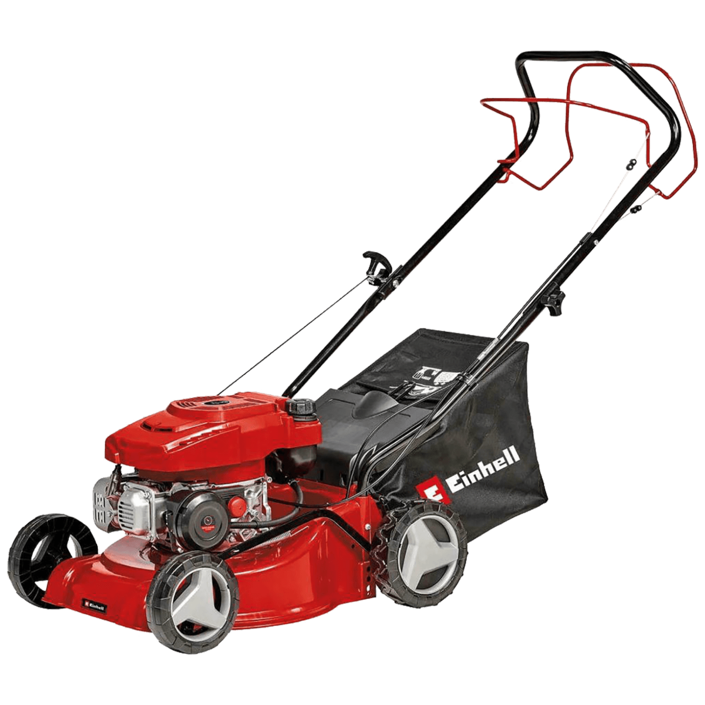 Einhell samohodna benzinska kosilica GC-PM 40/2 S snažna je kosilica preporučena za travnjake veličine do 1000 m². Einhell 4-taktni OHV-motor sa zračnim hlađenjem isporučuje ogromnu snagu za suočavanje s velikim površinama i područjima s velikim rastom trave. Možete uključiti i isključiti pogon na stražnjim kotačima. Vi odlučujete trebate li i kada vam treba pomoć motora. Einhell samohodna benzinska kosilica ima centralnu mogućnost podešavanja visine košnje u 7 razina od 25 do 60 milimetara. Ergonomska preklopna dugačka ručka čini je ugodnijom za rad, a također olakšava odlaganje. Izuzetno visok otvor za izbacivanje trave osigurava da se pokošena trava skuplja izuzetno dobro, a velika košara za hvatanje trave ima pokazivač razine napunjenosti i dvije ručke za lako pražnjenje. Atraktivno i čvrsto plastično kućište nudi okretnost za lakši rad i ima izrazitu prednost u težini u odnosu na kosilice sa čeličnim kućištima.