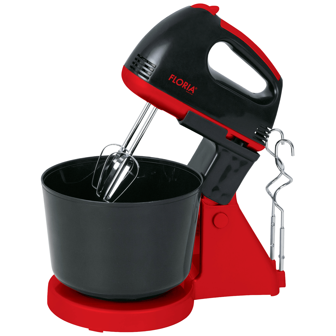 Mikser sa posudom, snaga 150 W, kapacitet posude 2.5 lit., 7 brzina rada, dvije kromirane metlice i kuke, dugme za izbacivanje sa sigurnosnim uređajem