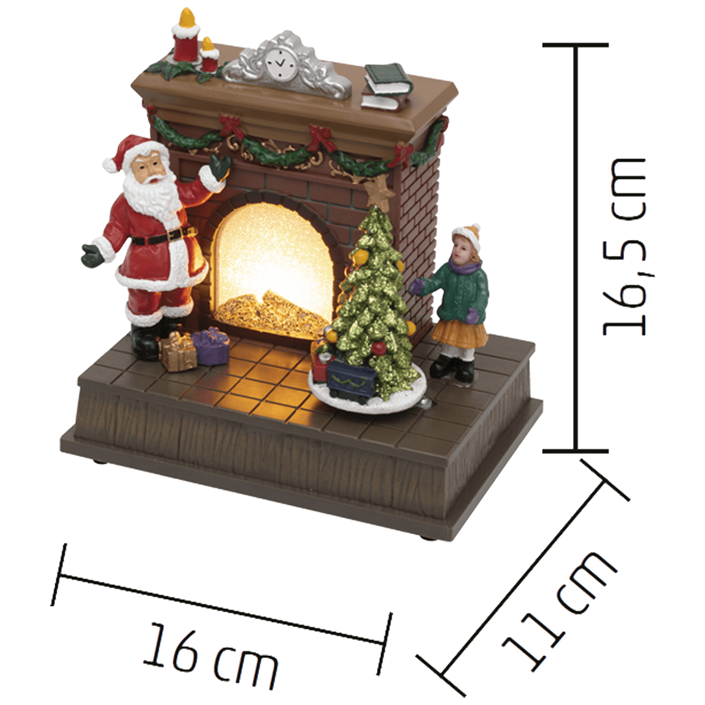 Unesite toplinu i magiju u svoj dom uz ovu prekrasnu dekorativnu LED rasvjetu. Idealna za stvaranje ugodne atmosfere, ovaj dio dekoracije donosi svjetlosni efekt kamina s rotirajućim božićnim drvcem i Djed Mrazom.
