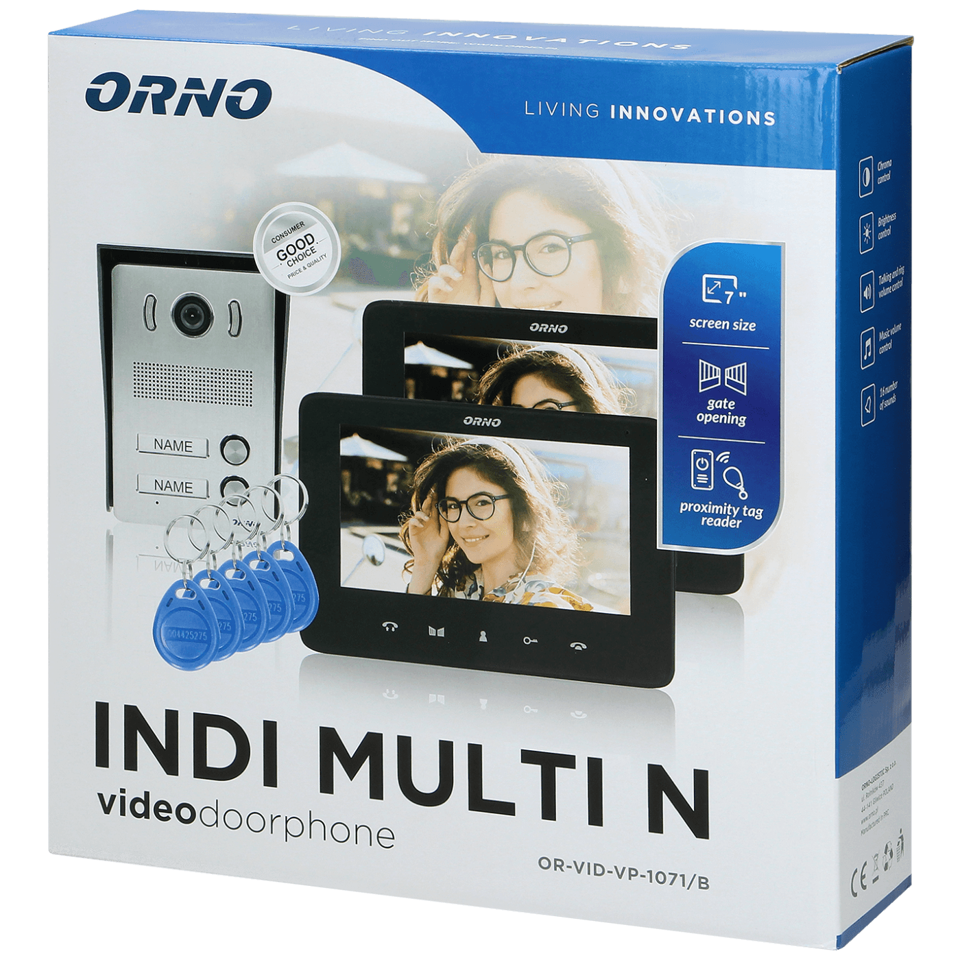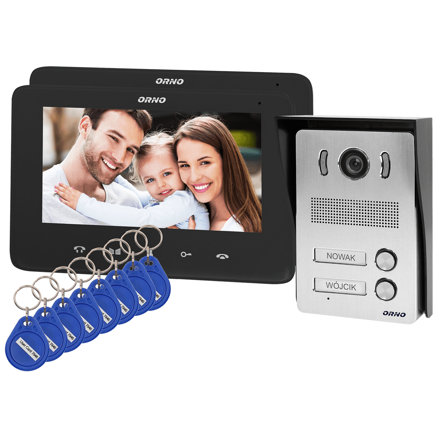 Orno Video interfon 2 x 7", 8 x RFID Tag, set, Indi Multi N - OR-VID-VP-1071/B
