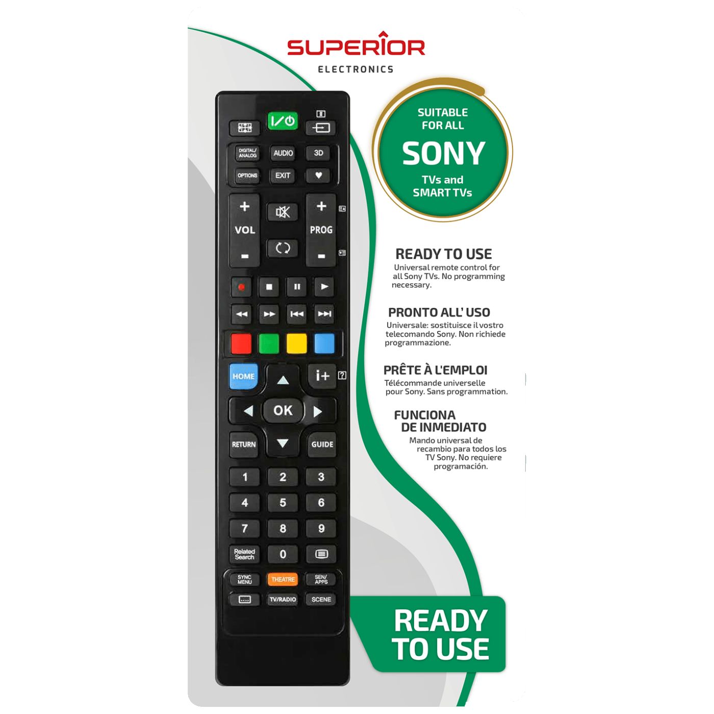 Praktičan i univerzalni daljinski upravljač za sve Sony TV prijemnike od 2000. godine. Osigurava jednostavnu kontrolu uz dvostruki IR prijenos, što garantuje trenutnu funkcionalnost bez dodatnog podešavanja.