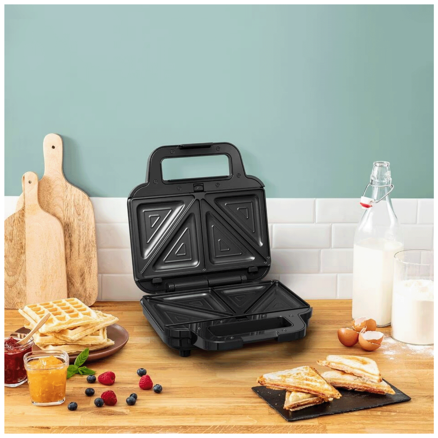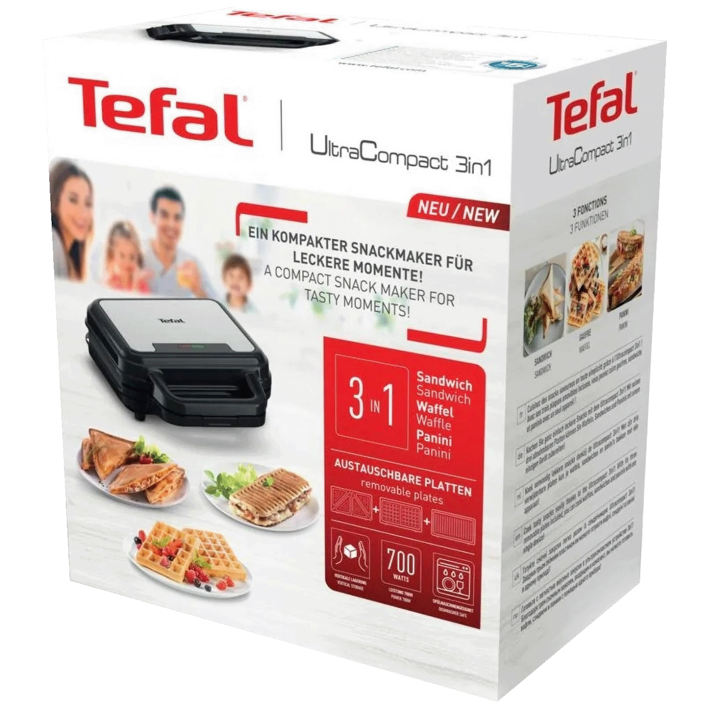 UltraCompact 3u1, koji kombinira pekač za vafle, aparat za sendviče i tost u jednom dizajnu, idealan je za brze i jednostavne svakodnevne grickalice.