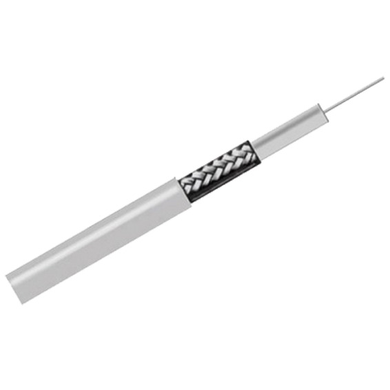 Koaksijalni kabel 5mm, 75 Ohm, pakiranje 150met, bakreni provodnik, vanjski promjer 5mm, označena metraža na kabelu, A klasa, boja bijela