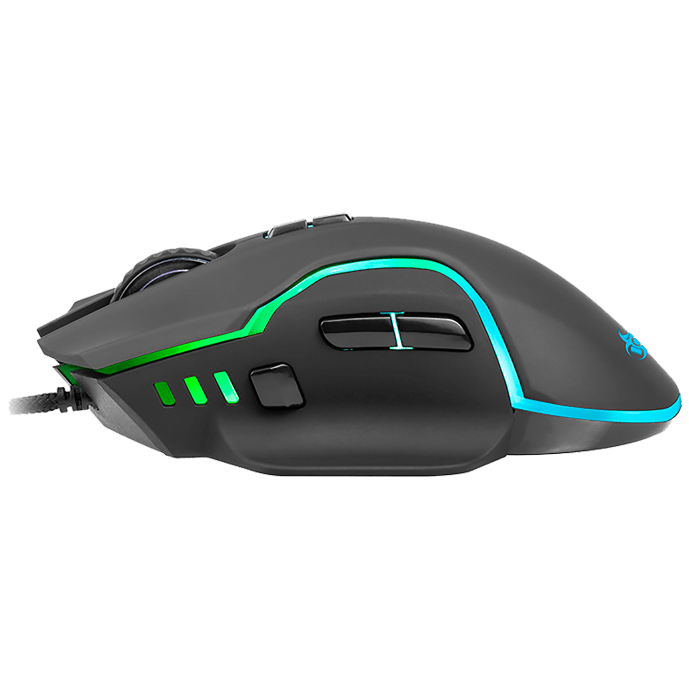 Podesiva rezlucija 800 / 1200 / 1600 / 2400 dpi, optički senzor, 8 tipki, pozadinsko RGB osvjetljenje, matirana površina za sigurnije držanje, izdržljivi teflonski klizači, pleteni USB kabel, dužina 1.5 met., dizajniran za dešnjake