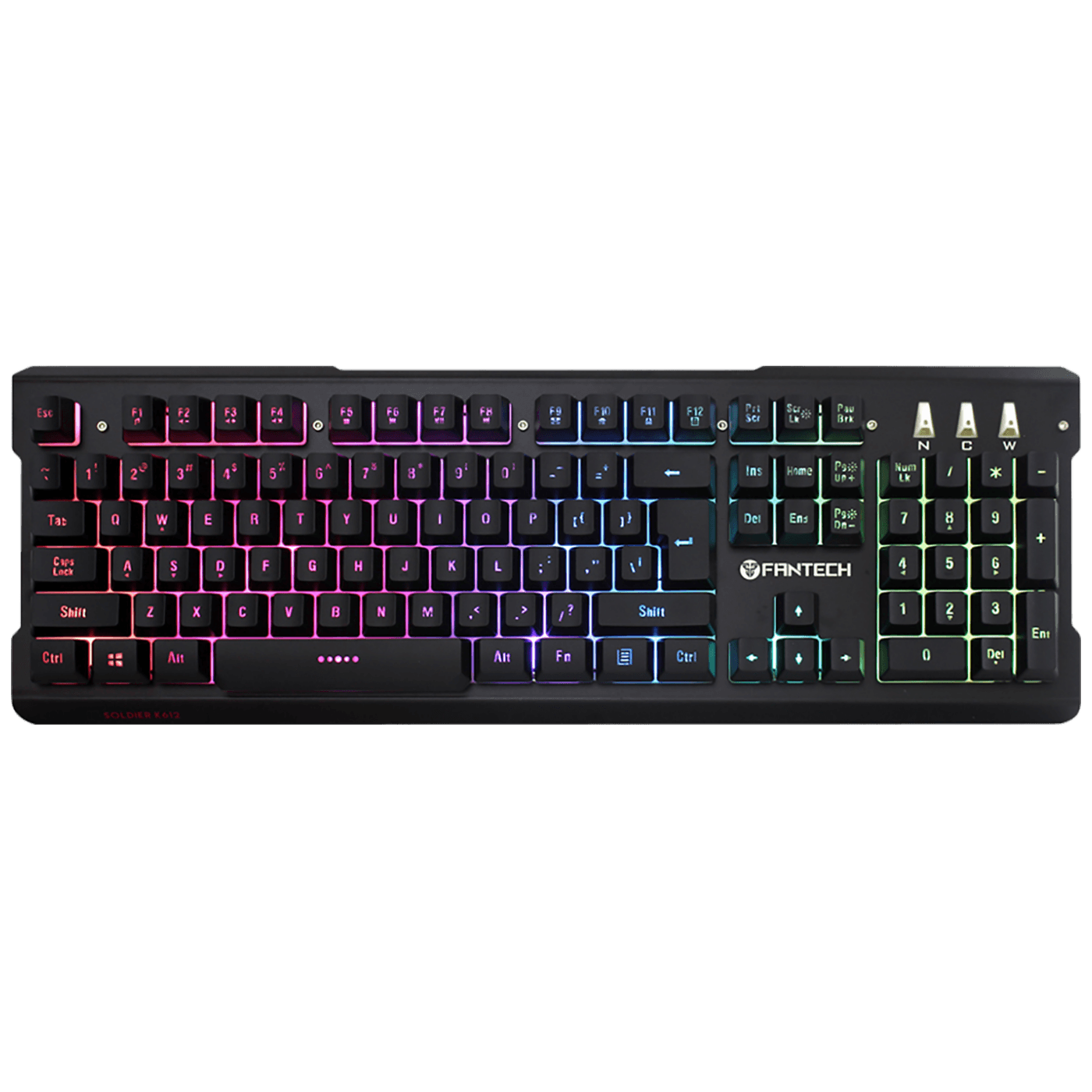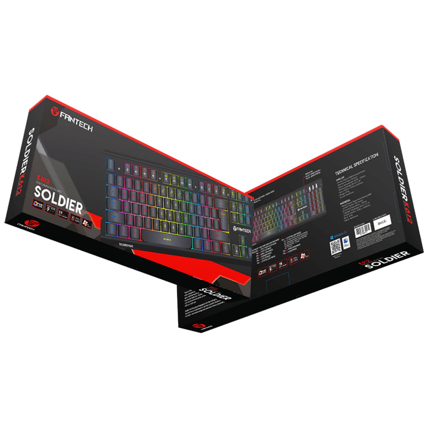 Fantech Soldier K612 – kvalitetna gaming tipkovnica, kreirana uz uključivanje napredne tehnologije iz svijeta savremenih uređaja. Tijelo tipkovnica je izrađeno od legure aluminija i dopunjeno je plastičnim elementima, zbog čega je model sposoban da izdrži manje štete. Ukupan broj tipki je 102, a za jednostavnost korištenja dodato je još 12 tipki odgovornih za korištenje multimedijskih funkcija (prebacivanje muzike, otvaranje web stranica, upravljanje zvukom itd.). Ugrađeni sistem protiv kočenja omogućava vam da istovremeno koristite do 19 tipki, bez pozivanja prozora sistema upozorenja.