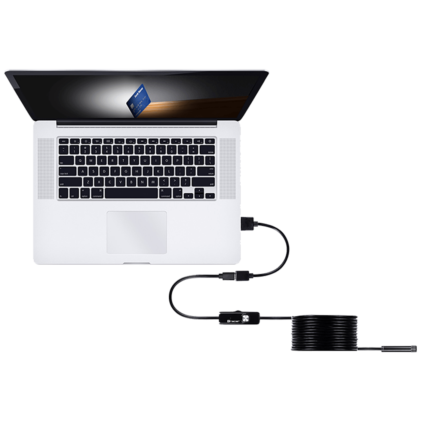Zahvaljujući namjenskom softveru, endoskop vam omogućuje pregled i snimanje slike na vašem računalu ili telefonu pomoću USB priključka (mikroUSB na USB adapter je uključen u pakiranje).