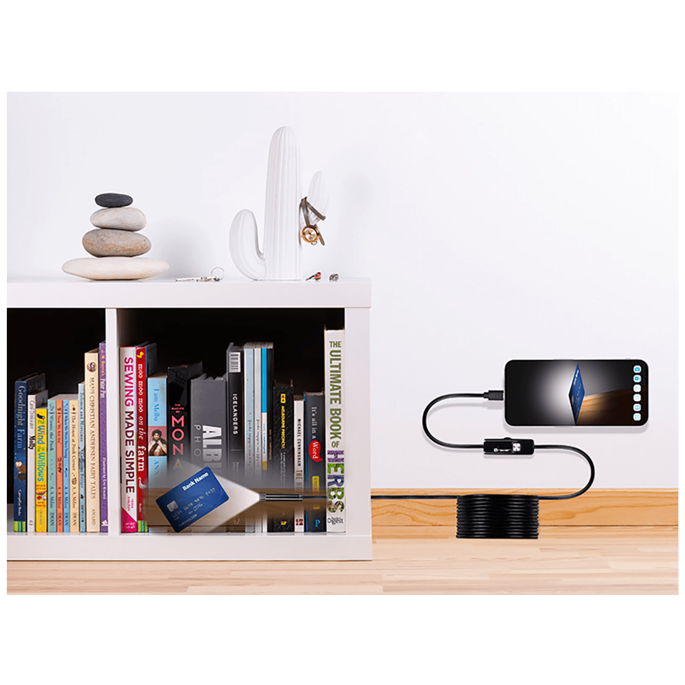 5 metara dug, kruti video kabel omogućit će vam da uvedete kameru za pregled u bilo kojem smjeru, bez efekta 'klizanja leće'. Za razliku od fleksibilnih kabela, možete prilagoditi oblik ovog kabela kako biste ga uveli u uska mjesta i prikazali sliku tog preciznog mjesta na svom monitoru ili zaslonu pametnog telefona.