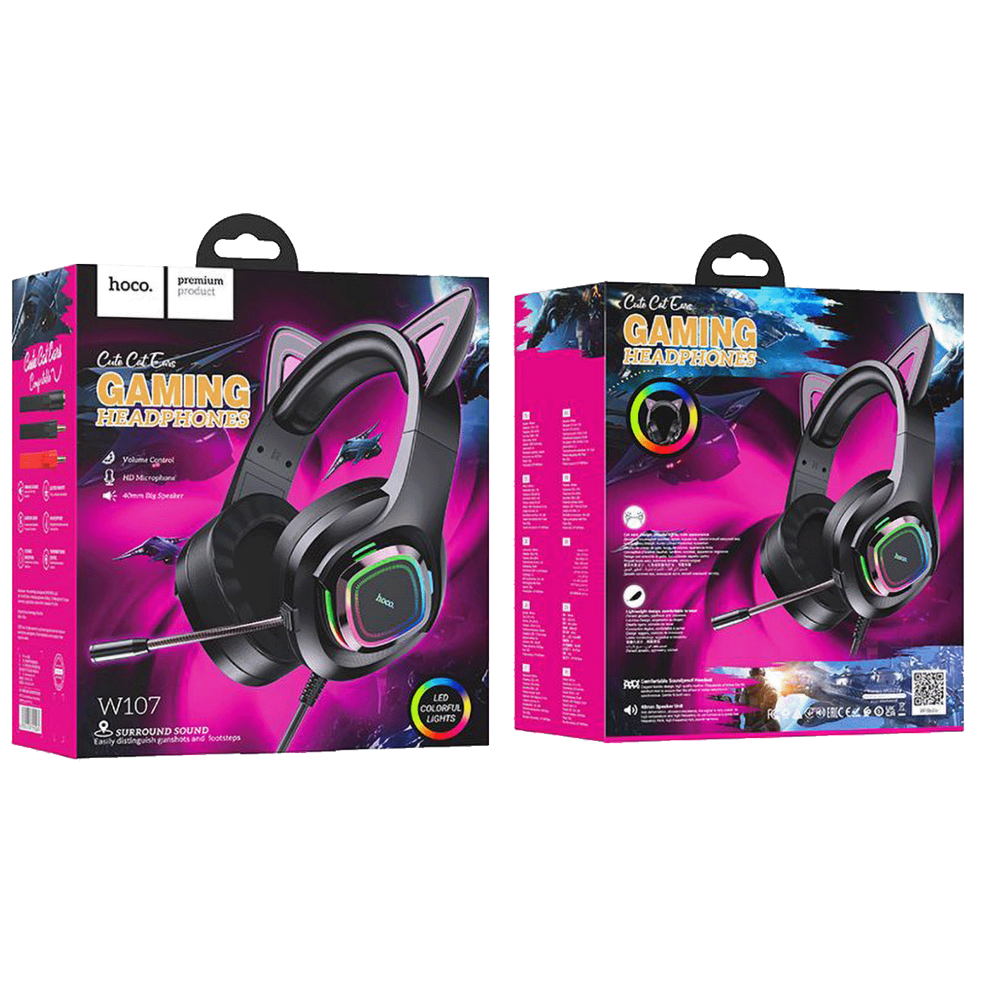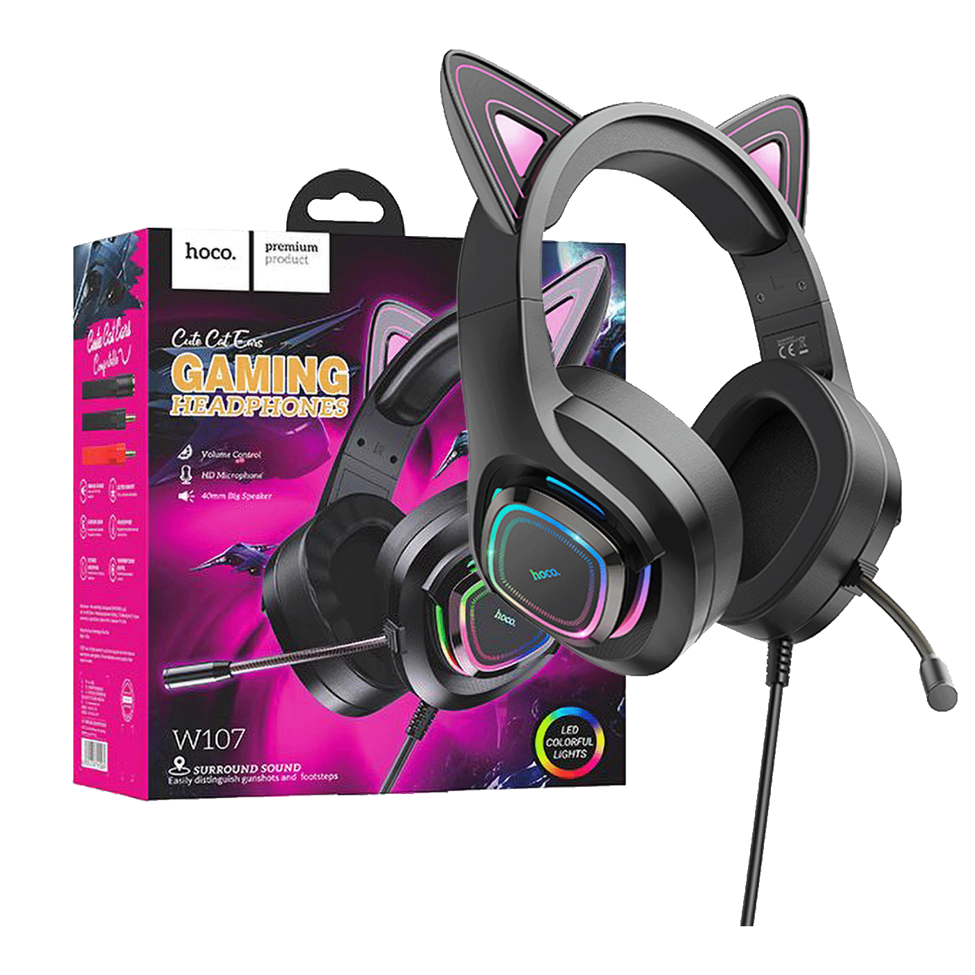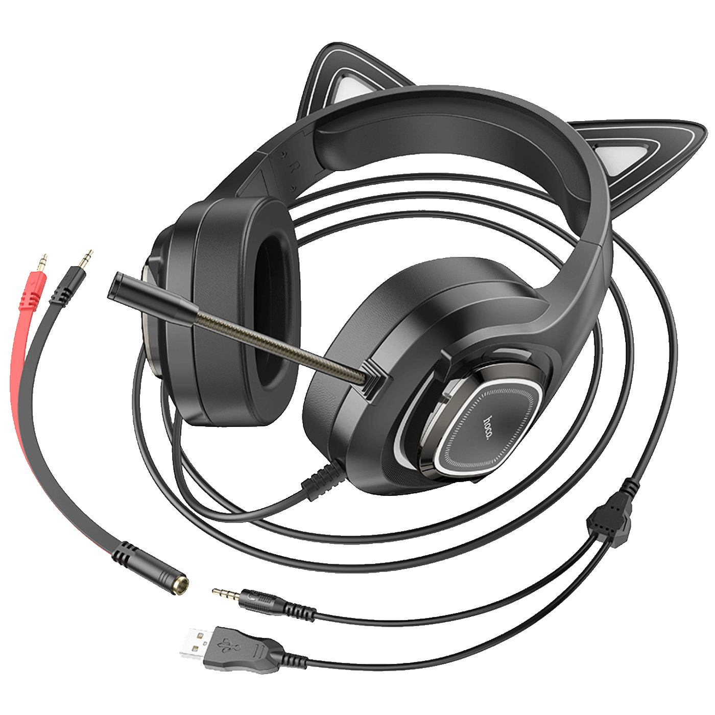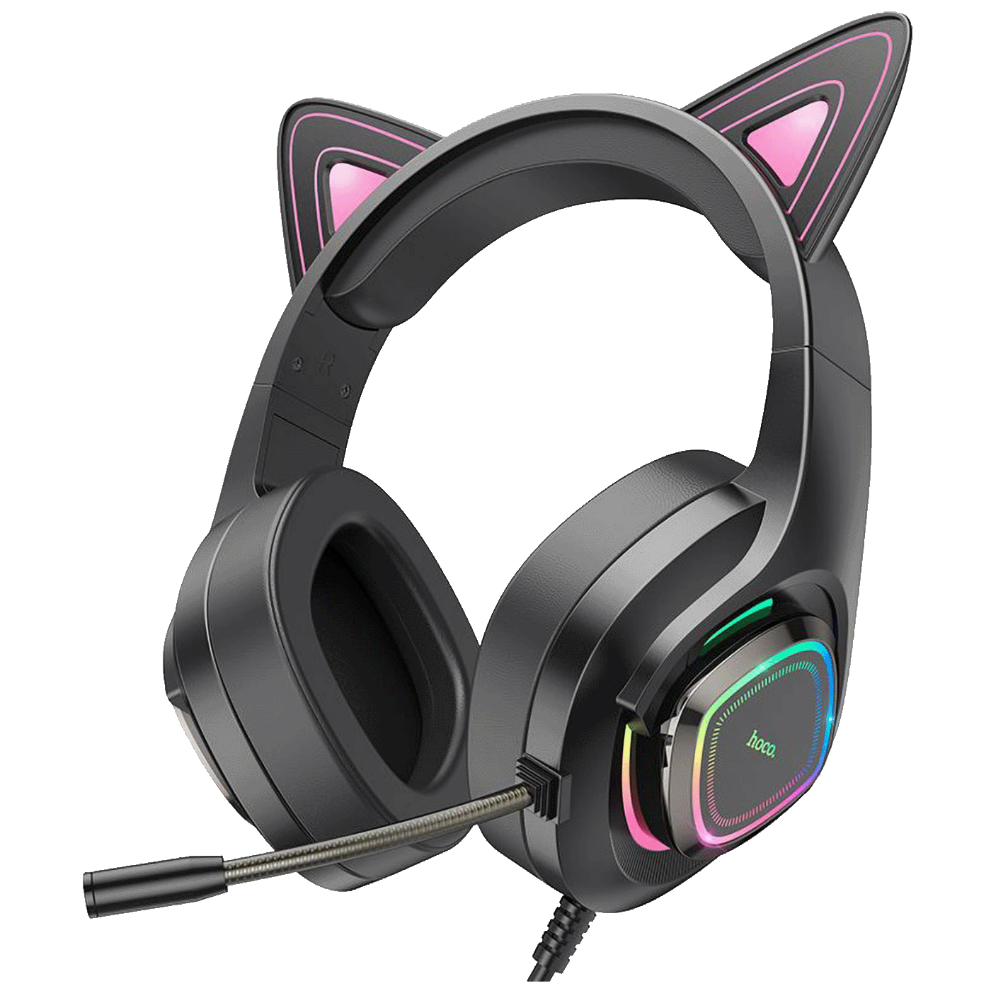 hoco. Slušalice sa mikrofonom, gaming, USB/3.5 mm, LED - W107 Cute Cat Black/Pink