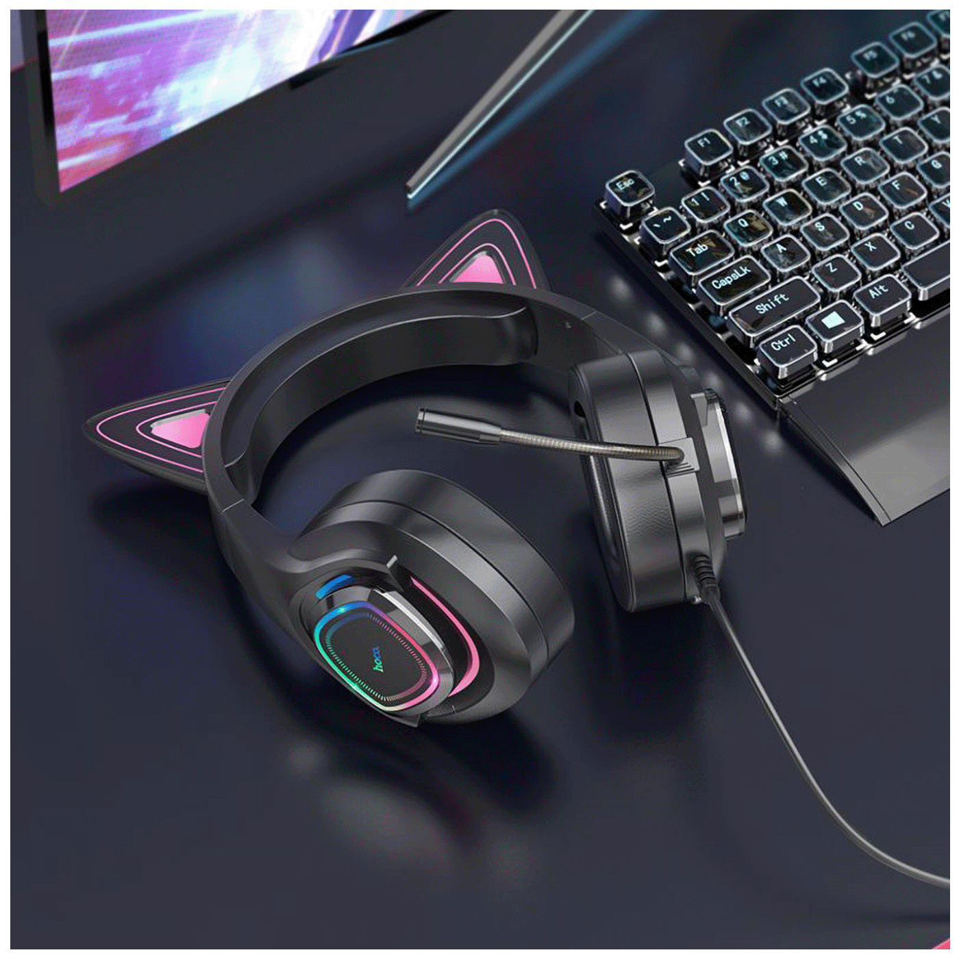 Slušalice HOCO GAMING Cute Cat W107. Savršen dodatak za virtuelne igre.