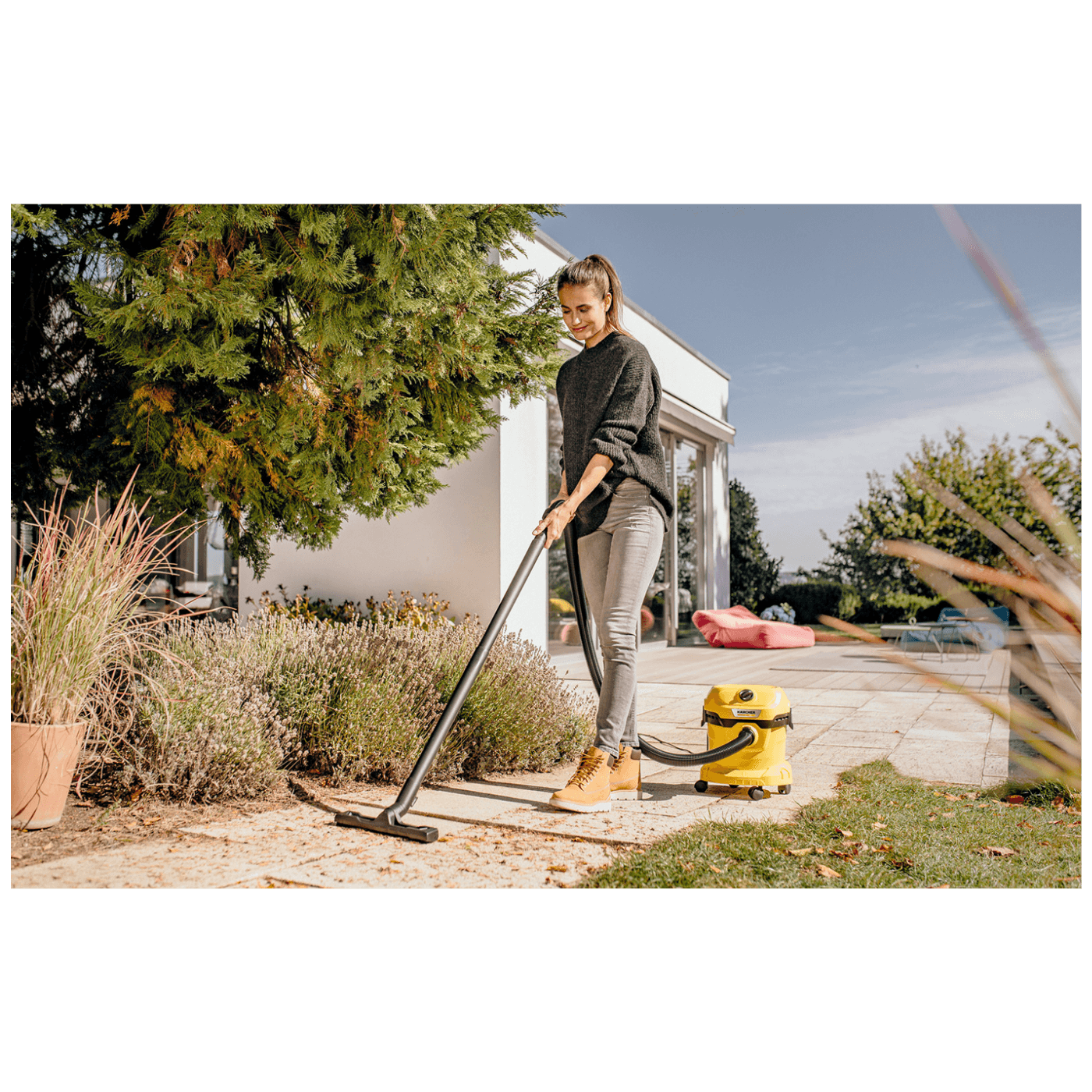 Usisavač za mokro i suho usisavanje ima robusnu plastičnu posudu od 12 litara, kabel od 4 metra, kao i usisnu cijev dugu 1,8 metara s ravnom ručkom, podnu mlaznicu Clips, pjenasti filter i filter vrećicu od flisa.