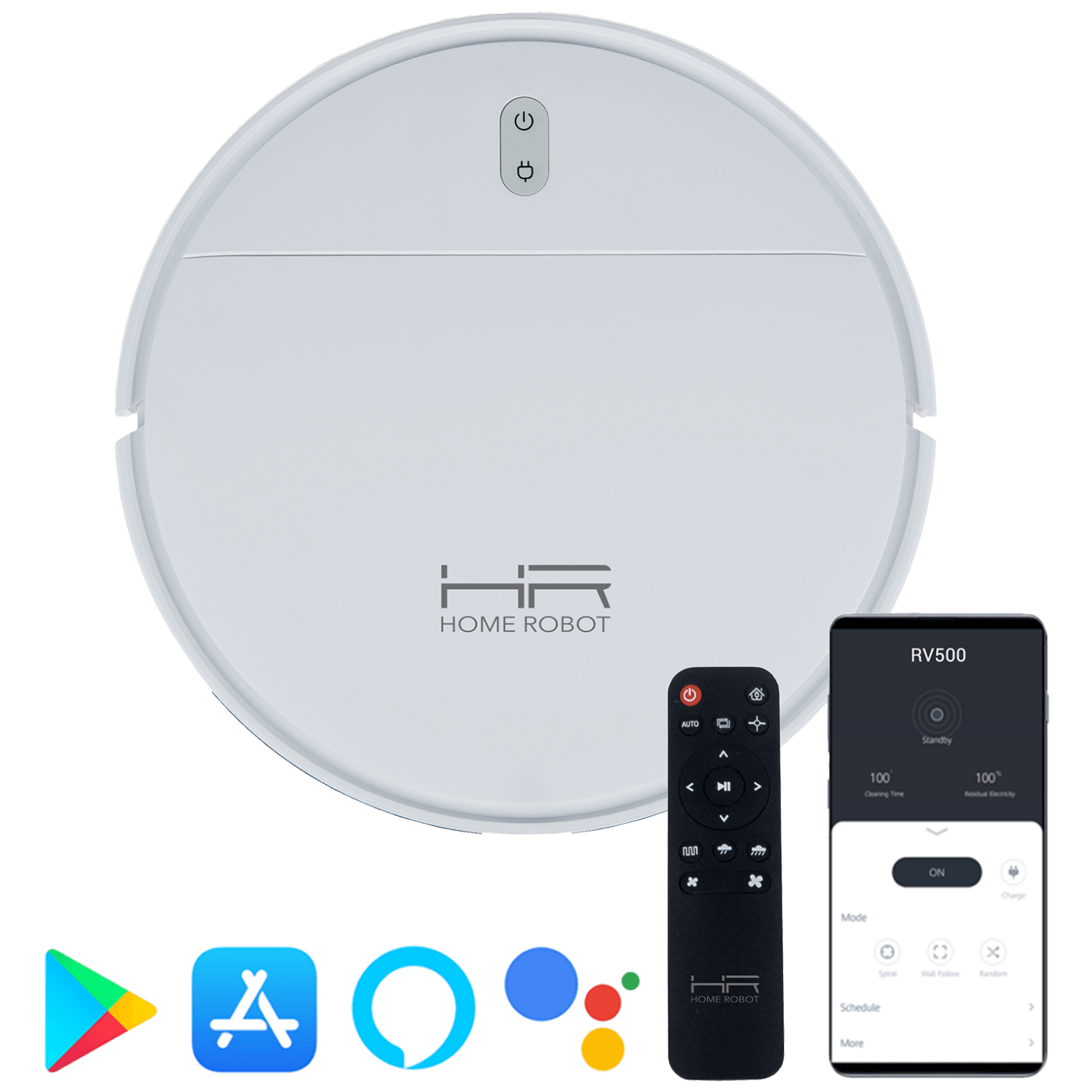 Jednostavno ga povežite s kućnom Wi-Fi mrežom i koristite ga putem aplikacije Tuya (iOS i Android), daljinskog upravljača ili gumba na samom robotu. Robot usisavač HOME ROBOT RV500 također podržava glasovno upravljanje s Alexa i Google Assistantom.
