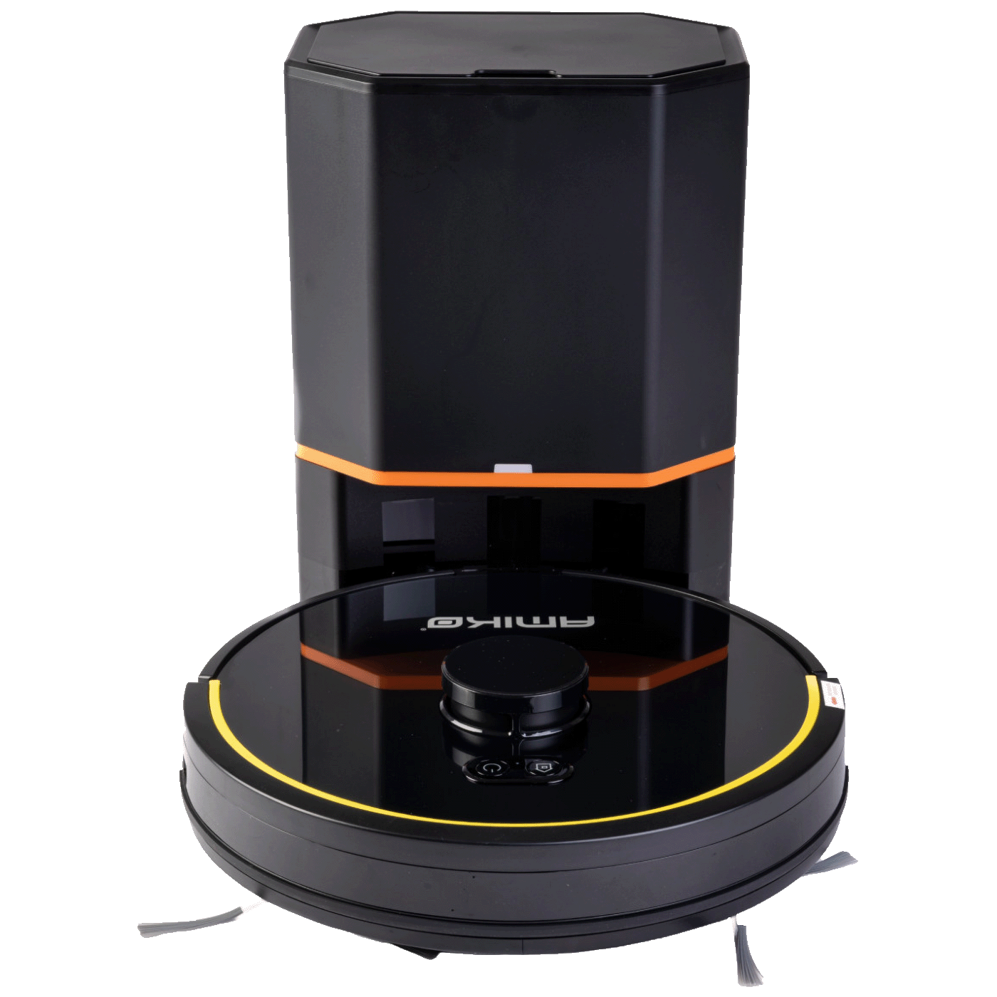 Amiko RV1000 ima patentirane dvostruke bočne četke koje se ne petljaju i plutajuću valjkastu četku u obliku slova V koja učinkovito skuplja prljavštinu čak i na teško dostupnim mjestima. Nidec motor uređaja i super široki terenski kotači (7,1 cm) osiguravaju glatko i učinkovito kretanje na svim vrstama podloga.