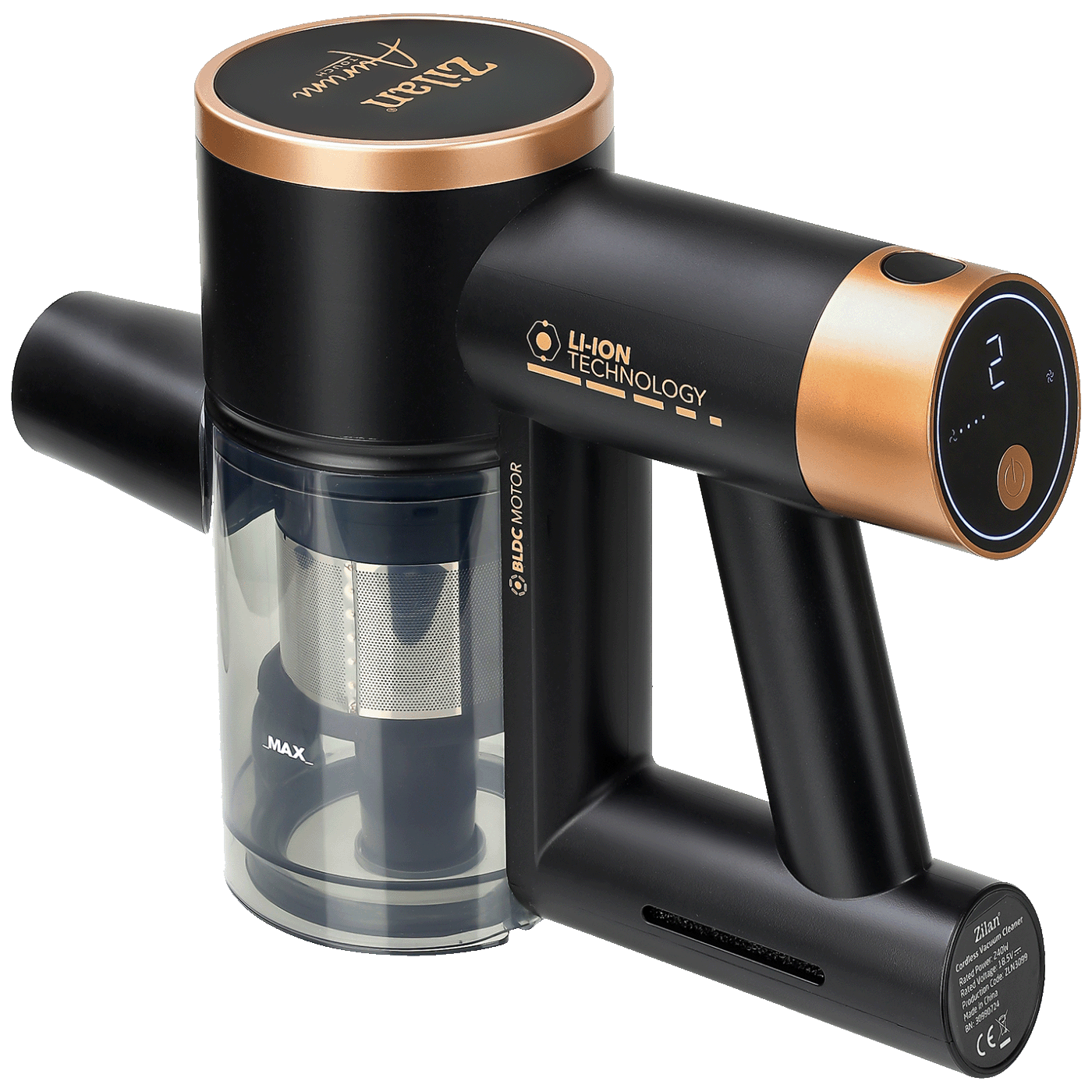 Zilan ZLN3099 Aurum štapni usisavač ima snagu od 220W, kapacitet spremnika za pohranu prljavštine od 350 ml i litijsku bateriju od 2500 mAh.