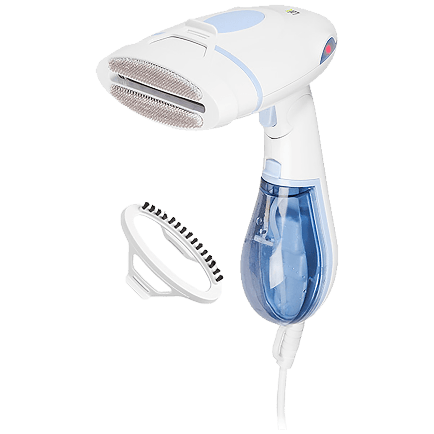 Ručni aparat za peglanje na paru, snaga 1300 W, prevlaka od nehrđajućeg čelika, 2 nastavka, za deblju i finu tkaninu, uklonjivi spremnik za vodu zapremine 140 ml., peglanje na paru, vertikalno peglanje, indikator, napajanje 220-240 / 50 Hz, dužina napojnog kabla 1.8 met.