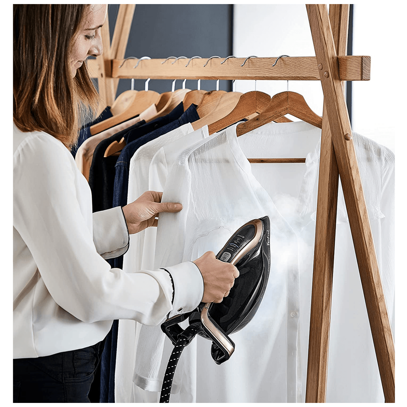 Rješenje za peglanja 2 u 1 nudi mogućnost duljeg plačanja ili malih korekcija u zadnji trenutak. Od kuće ćete uvijek izlaziti potpuno uredni.