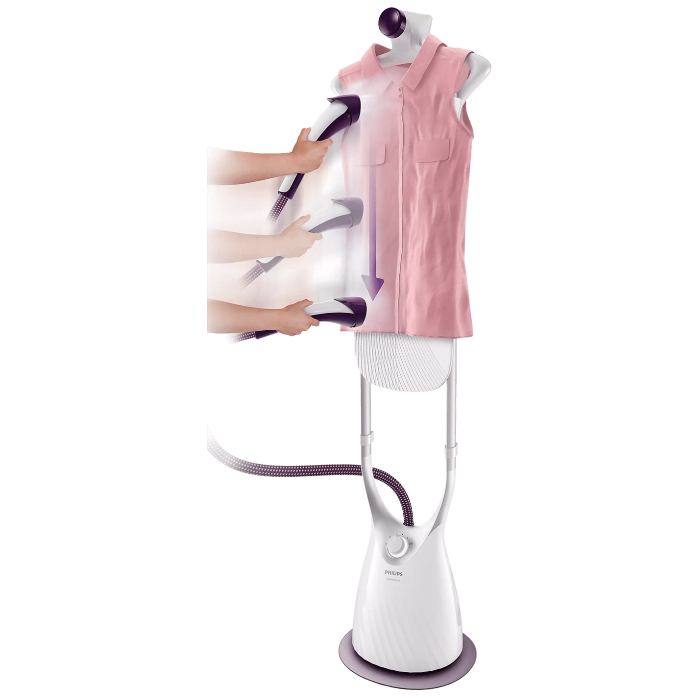 Snažna kontinuirana para ispuhuje se kroz mlaznice, omogućavajući uklanjanje nabora u samo nekoliko poteza.