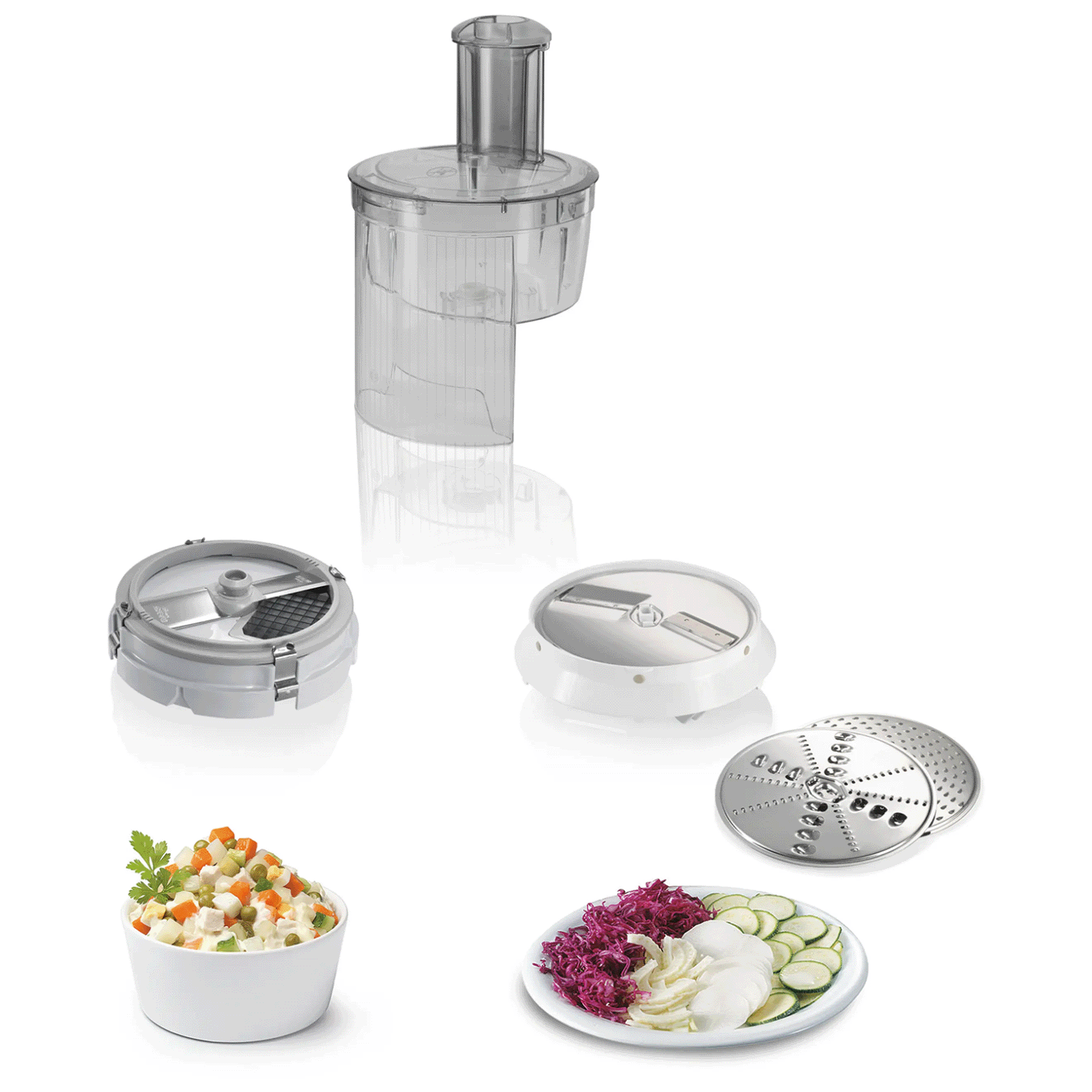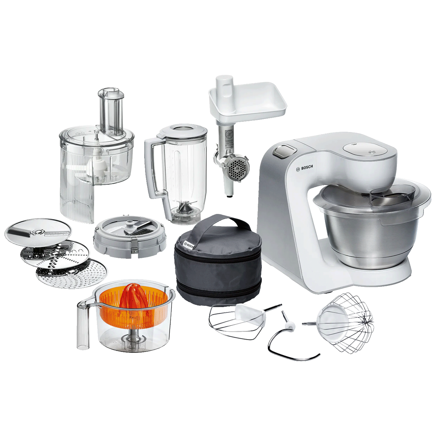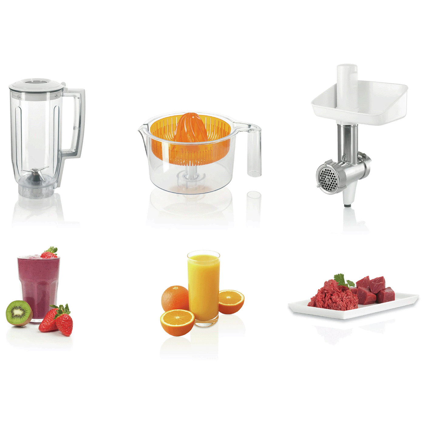 Ovaj kuhinjski aparat dolazi sa višenamjenskim dodacima, uključujući sjeckalicu za rezanje, mljevenje i ribanje, blender za pripremu ukusnih smoothieja, mesoreznice za pripremu mesnih proizvoda i cijedilo za argume za svježe sokove. Uz to, ovaj aparat dolazi sa metlicama za mješanje, tučenje i gnječenje, što Vam omogućava da pripremite bilo koju vrstu tijesta ili smjese.