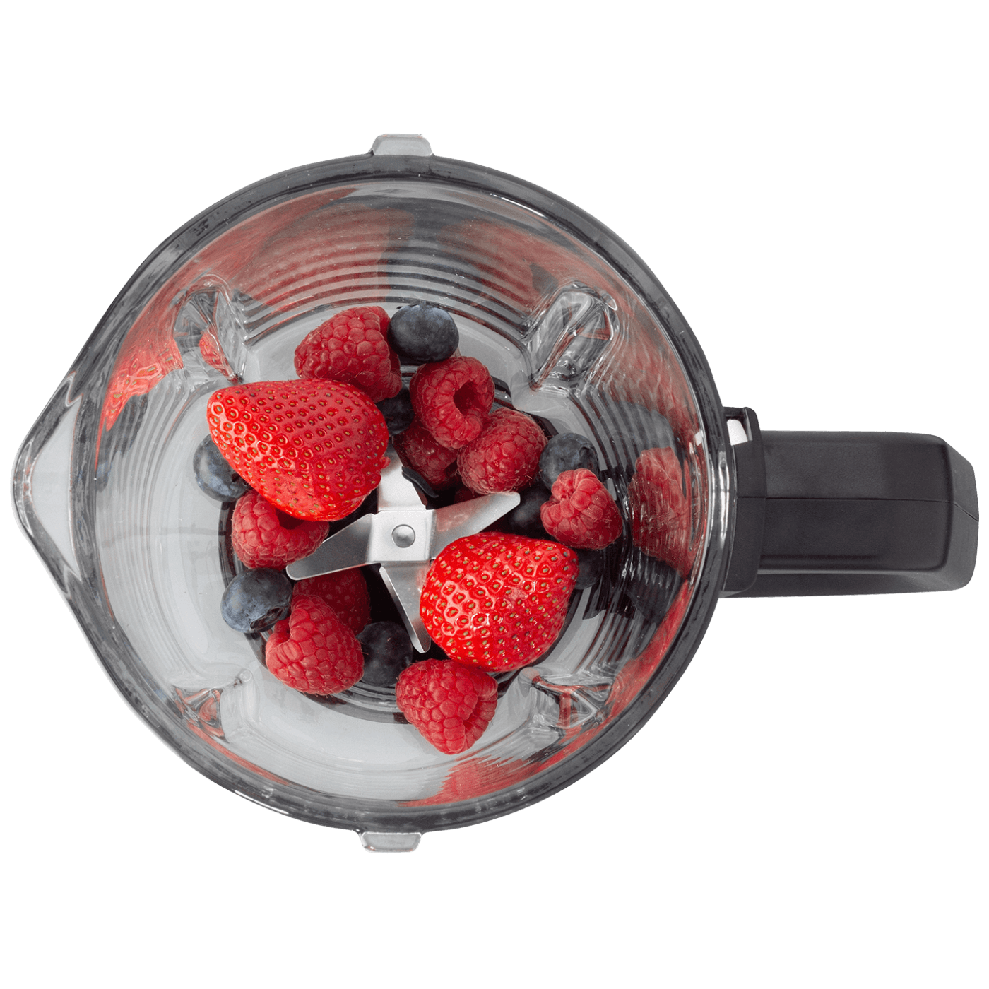 Blender, snaga motora 500 W, na izmjeničnu struju AC, tihi rad, jednostavno čišćenje, učinkovita četverostruka oštrica, Gumb za uključivanje / isključivanje i rotirajući gumb za regulaciju, 2 brzine, trenutno djelovanje, jednostavno odstranjivanje sječiva za sigurno i jednostavno čišćenje, zapremina posude 1.5 lit., mjerna posuda, mjerna posuda za doziranje omogućava jednostavno slijeđenje recepta, otvor na poklopcu, navijanje priključnog kabla za jednostavno smiještanje, vakumske nožice za potpunu stabilnost, dugotrajna plastična posuda za miješanje, sigurnosni prekidač, kućište od plastike i metala, dužina priključnog kabla 0,8 met
